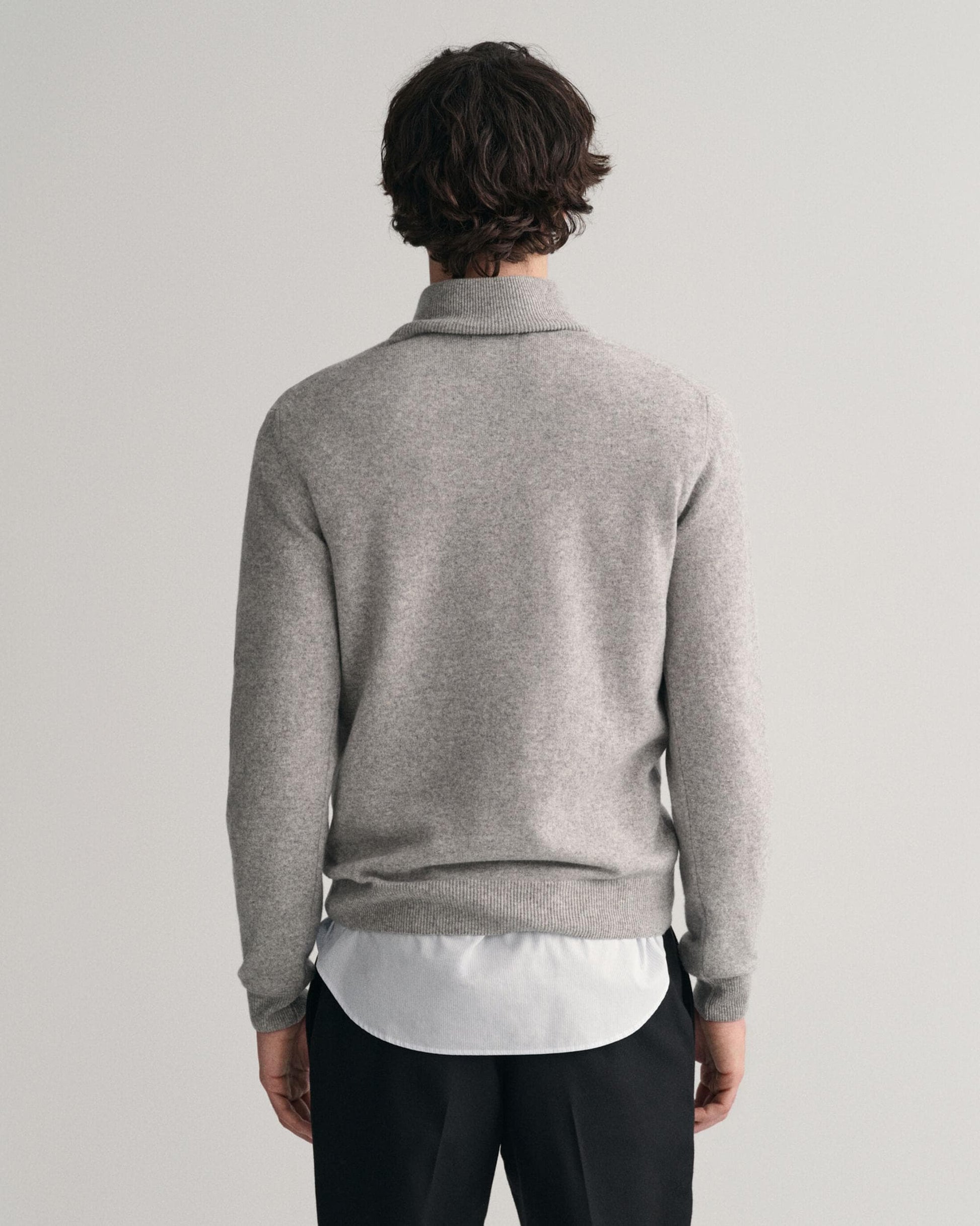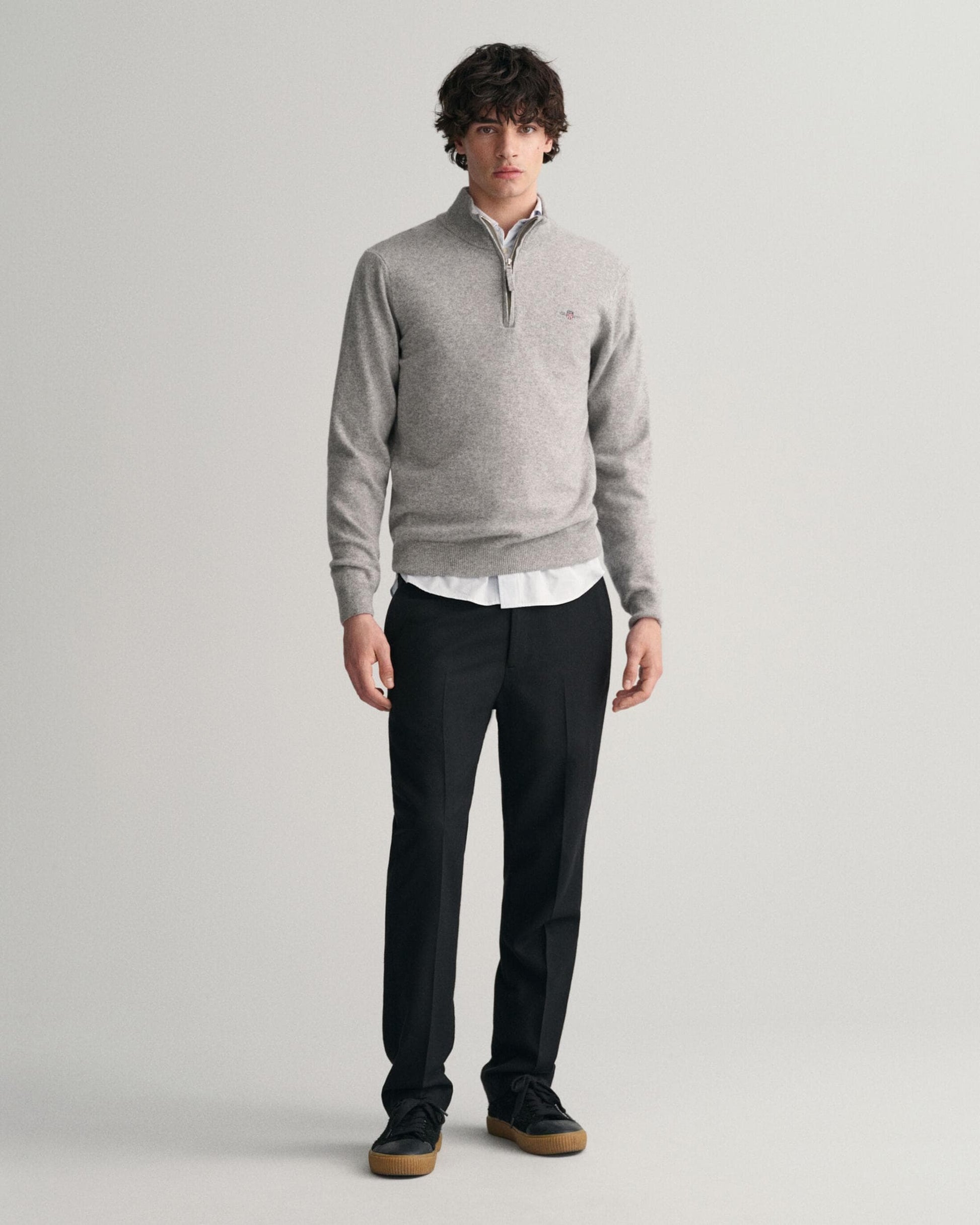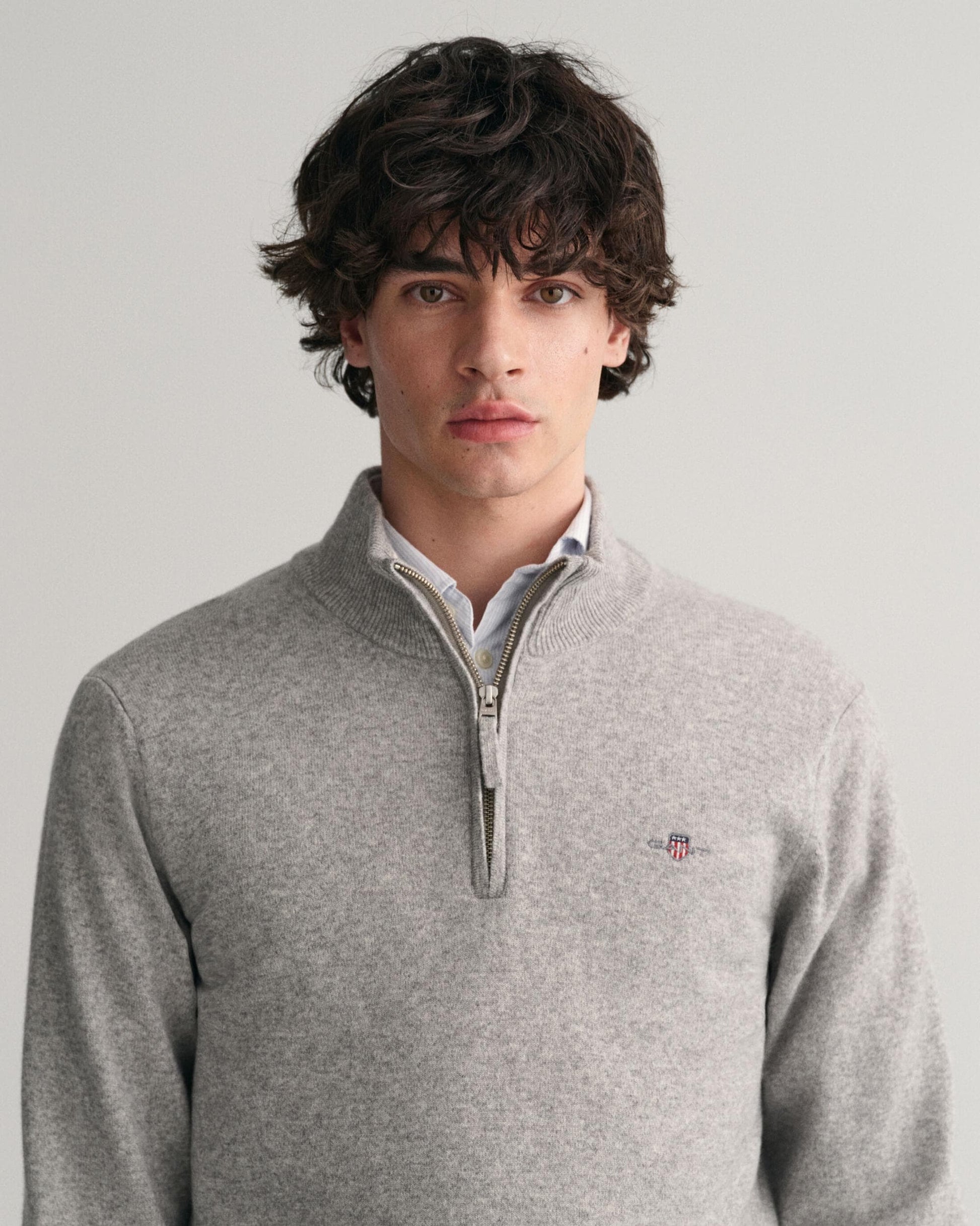 GANT Mens Superfine Lambswool Half Zip Cardigan in 93 Grey Melange