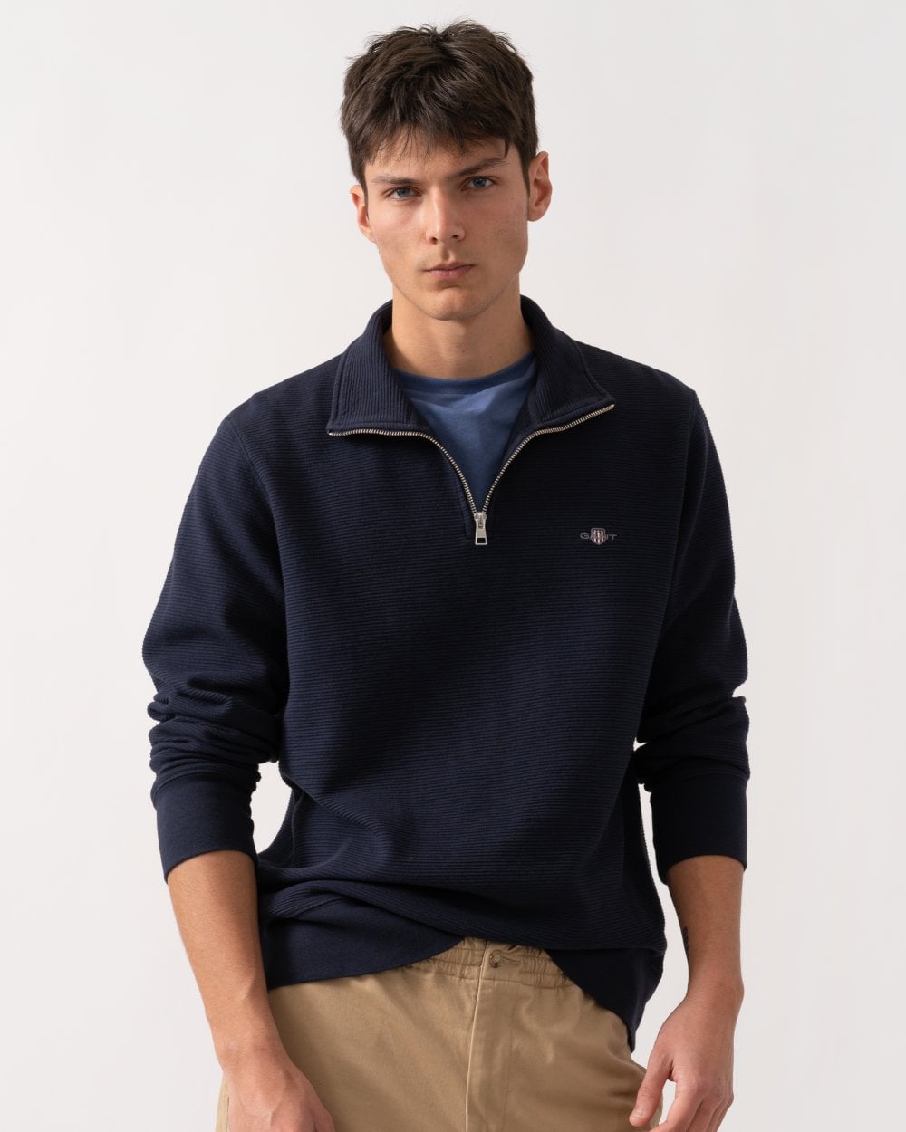 GANT Mens Texture Half-Zip Sweatshirt in 433 Evening Blue