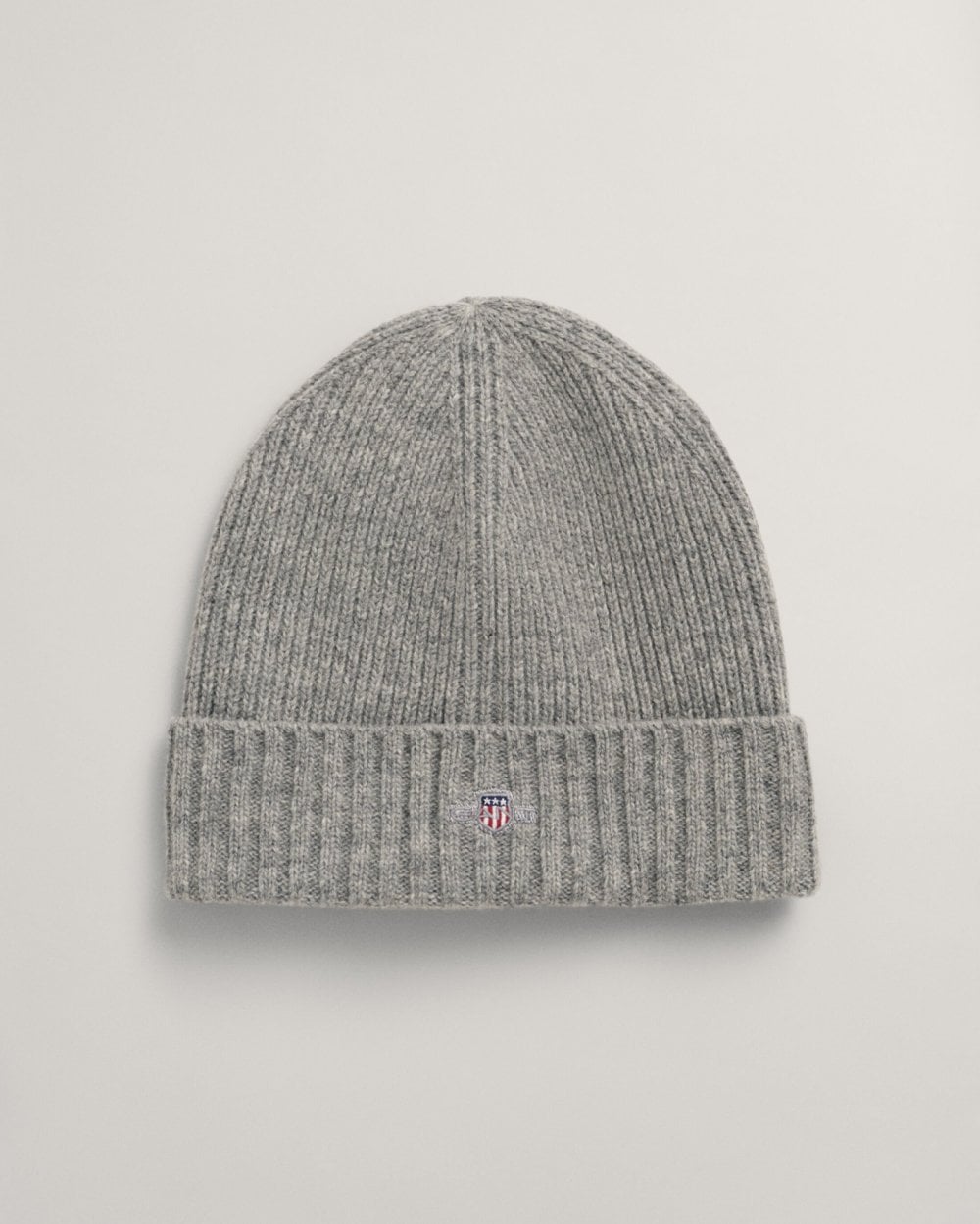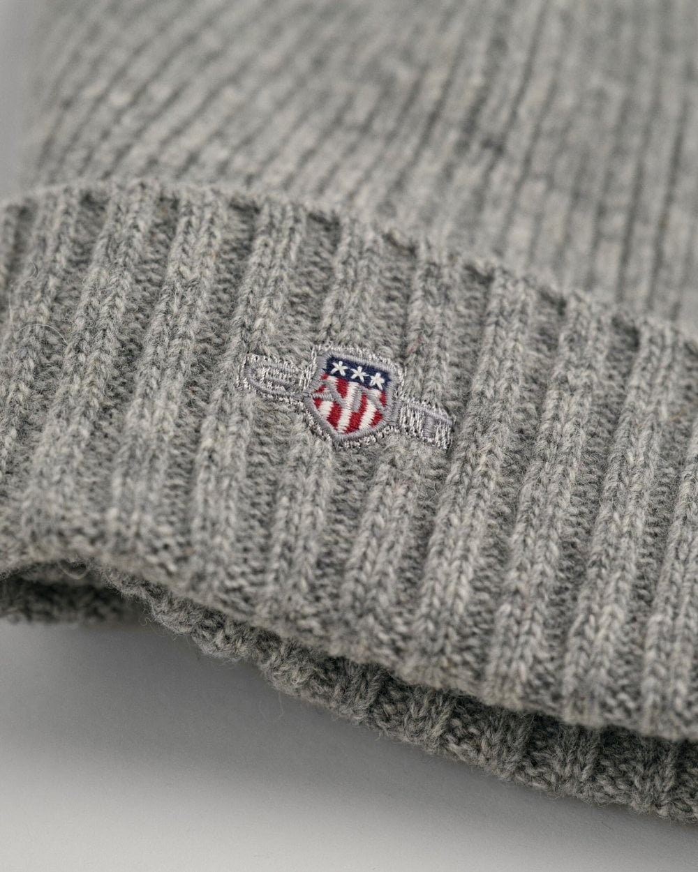 GANT Unisex Shield Wool Beanie in 93 Grey Melange