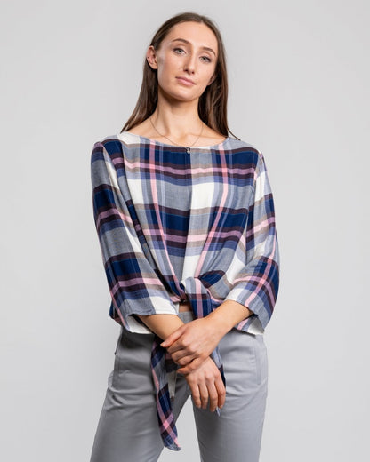 The Charlotte Checked Knot Top is detailed with a tie front for a cute-but-casual finish. It's loosely brushed and woven for a soft and casual feel. Wear into the w...