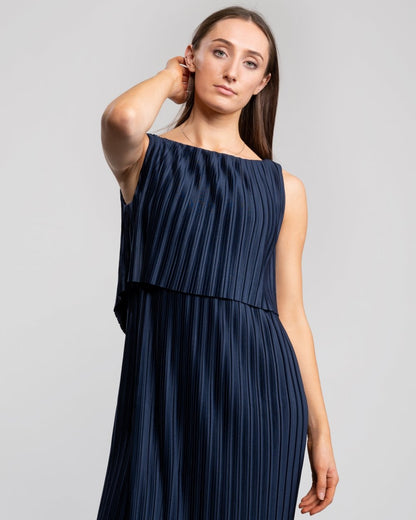 The Narcissus jersey dress features a pared-back silhouette, in a relaxed jersey fabric, expertly offset with pretty plissé and a flattering double layer. Wear now with ankle boots and lace-up sandals later in summer.