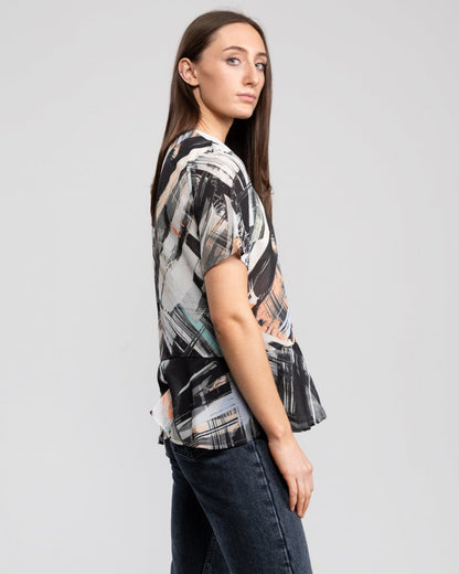 Elevate the strictest of tailored trousers with stand-out tops like these. Featuring a tasteful mix and mash of paintbrush strokes, this printed top is an instant outfit-elevator. For clever styling, wear with classic courts, allowing your outfit to work for day or night.