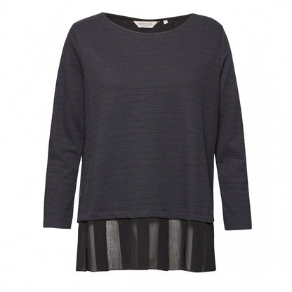 - Ripple-textured jersey top with contrast pleated chiffon panel at hem