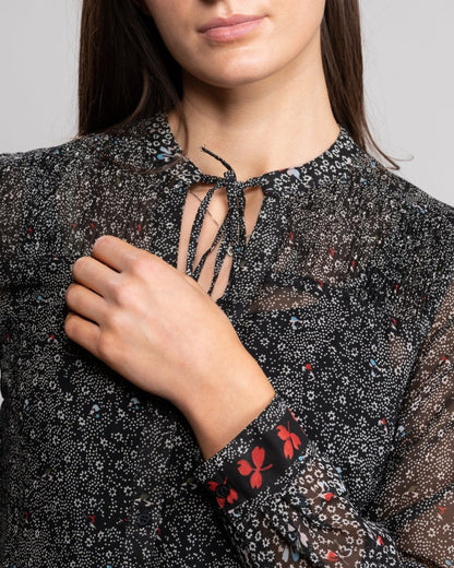 The power a good statement shirt holds is incomparable to any other top. Meticulously plisséd and adorned in a subdued mix of floral prints, the Scatter Floral Neck Tie Shirt can elevate the most ordinary of separates in a matter of seconds. For day or evening, it's suitable for any occasion.