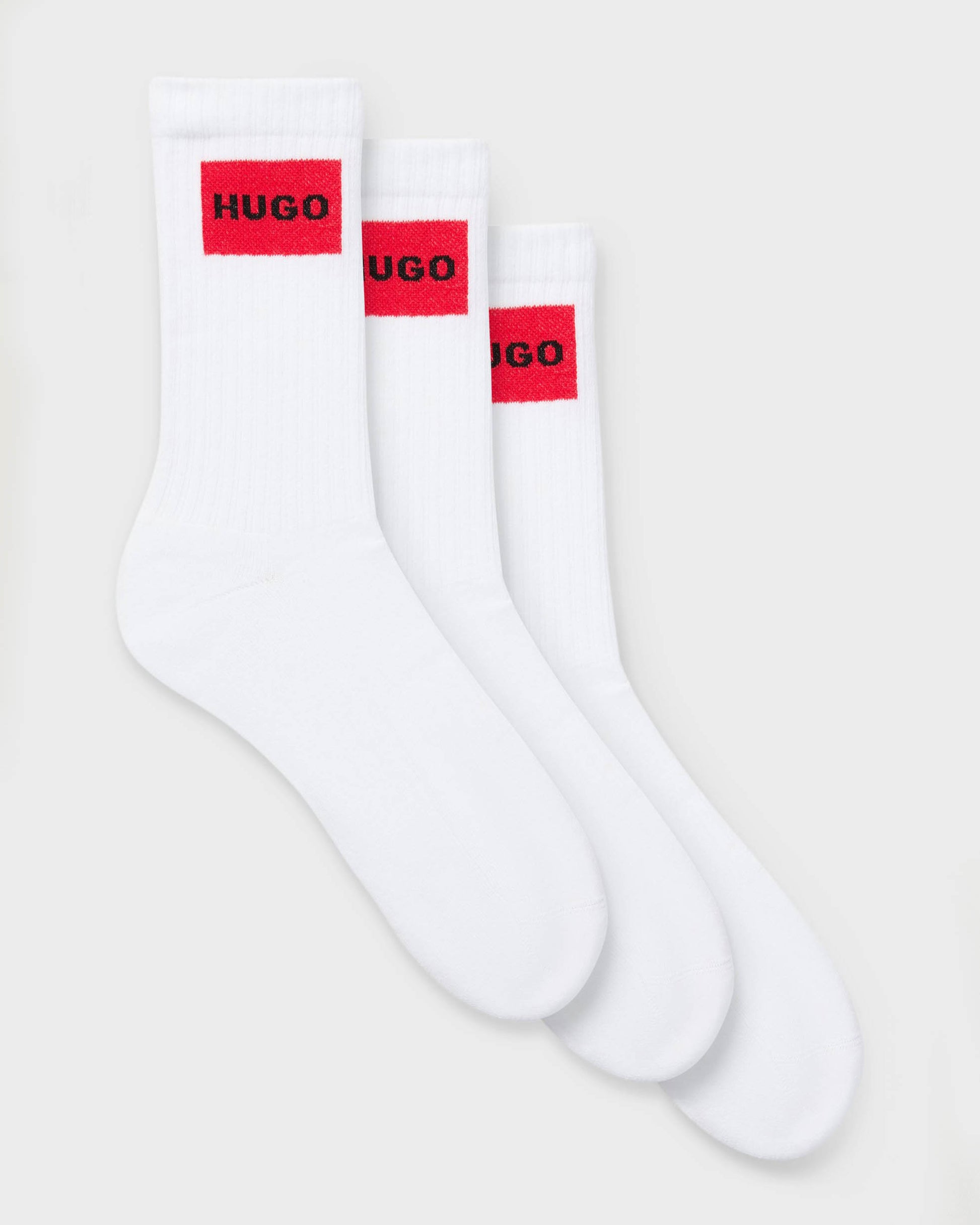 These sporty, quarter-length HUGO Menswear socks are an everyday essential. Made from soft and breathable ribbed stretch fabric. Red logo labels for contrast. This product is partly made with organic cotton.