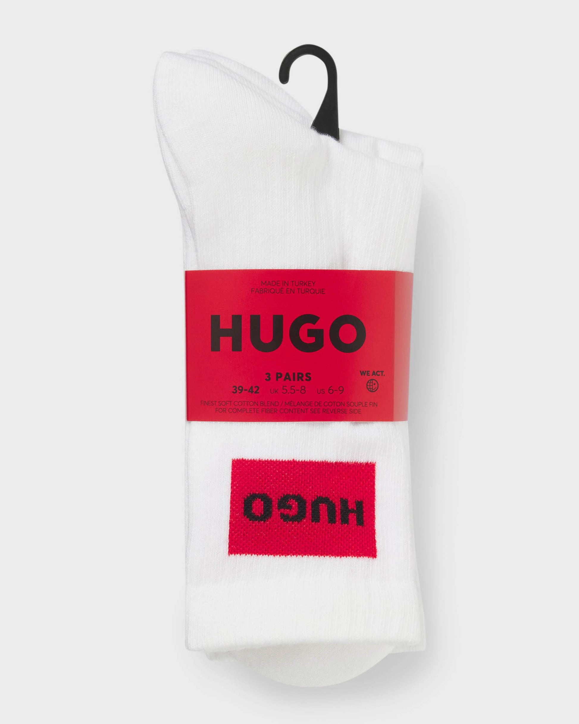 HUGO 3-Pack Quarter Length Combed Cotton Ribbed Mens Socks - White 100
