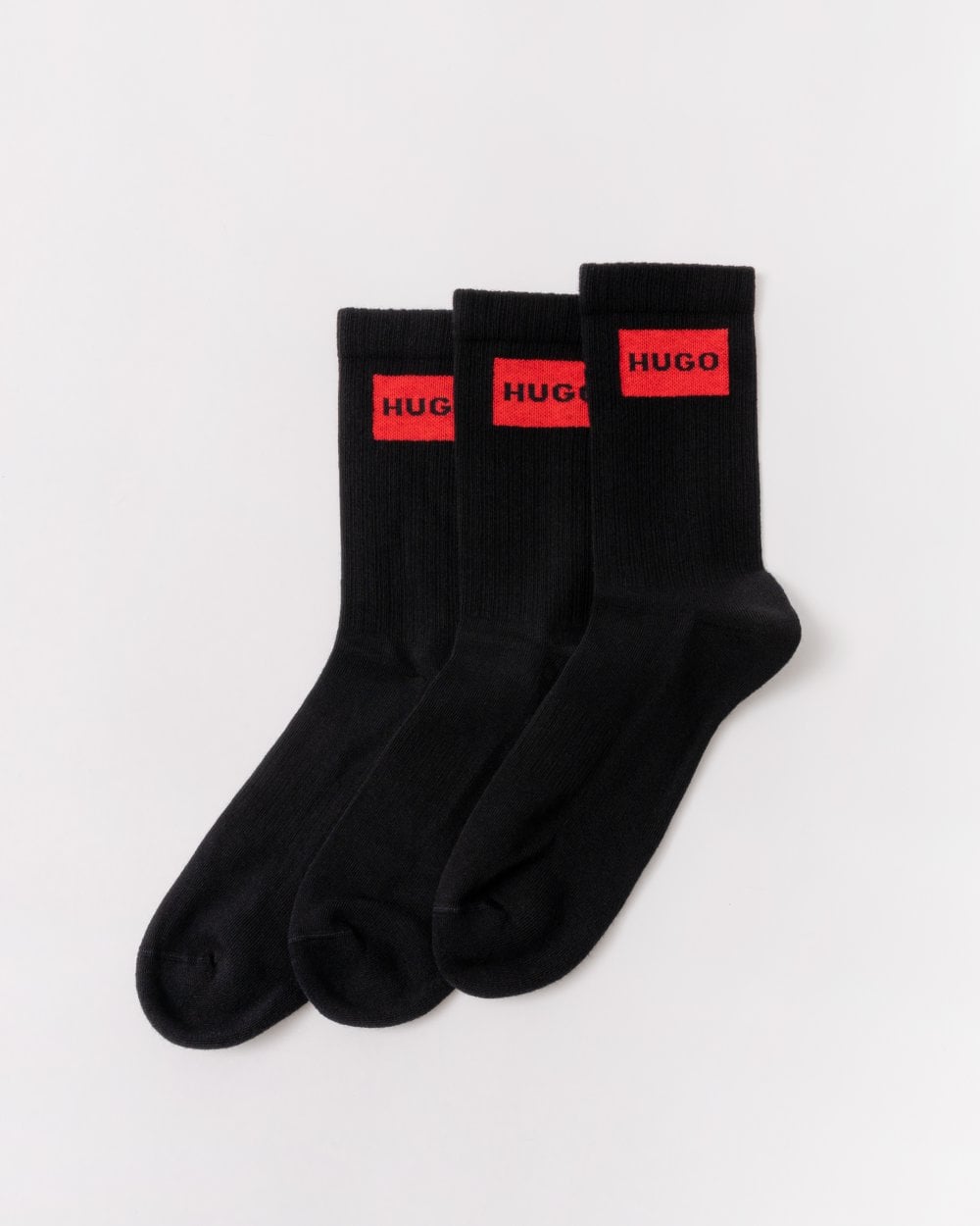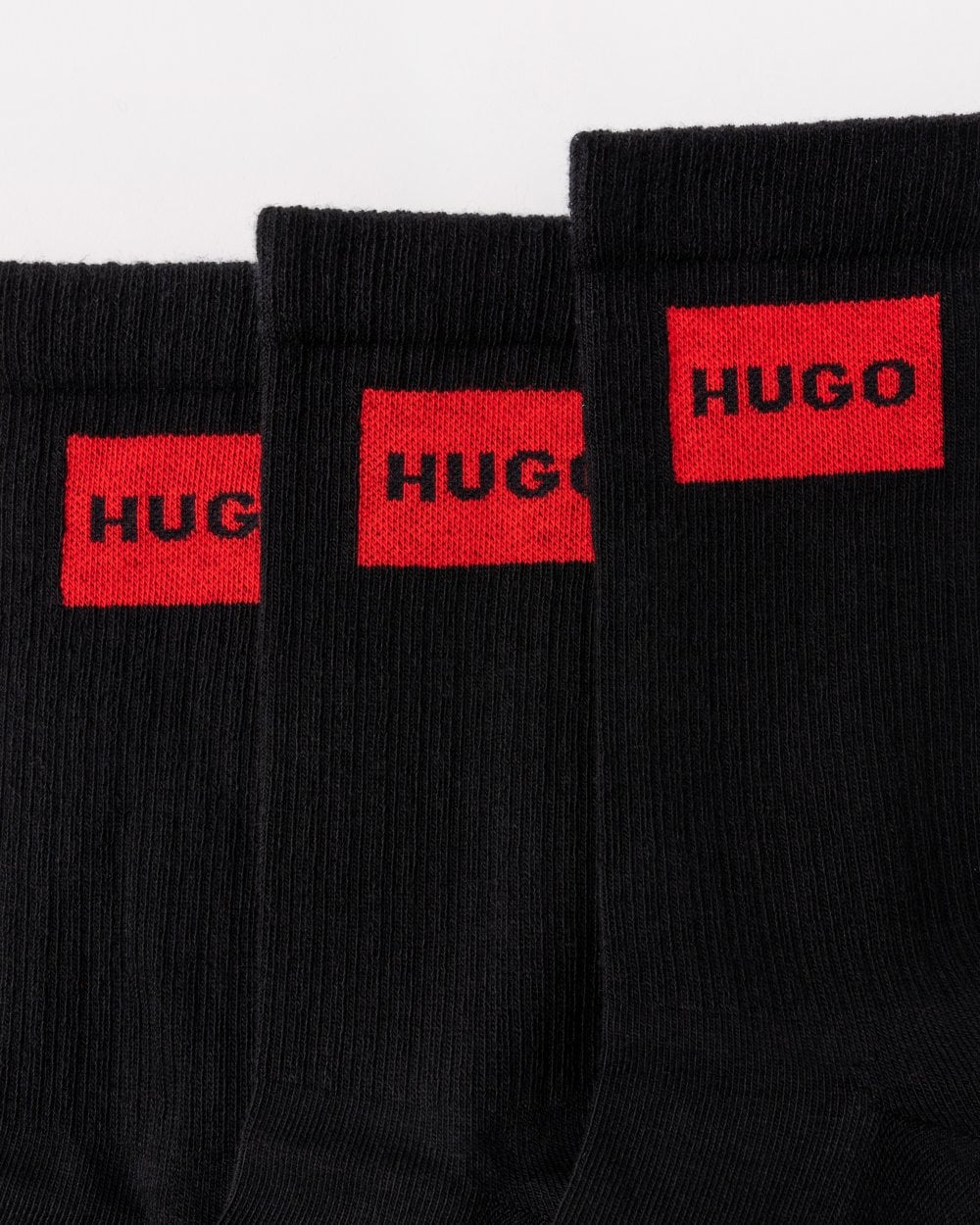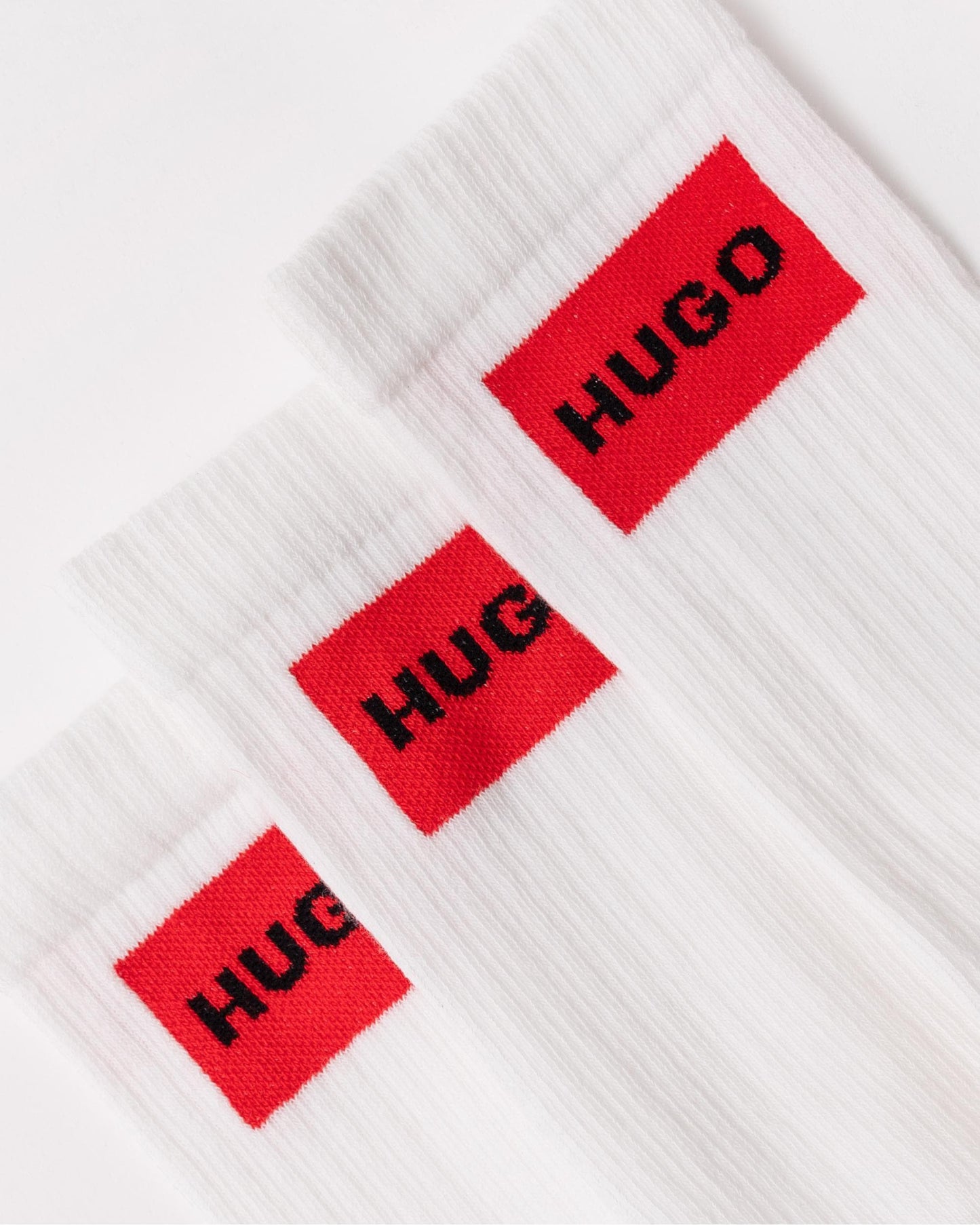 These sporty, quarter-length HUGO Menswear socks are an everyday essential. Made from soft and breathable ribbed stretch fabric. Red logo labels for contrast. This product is partly made with organic cotton.