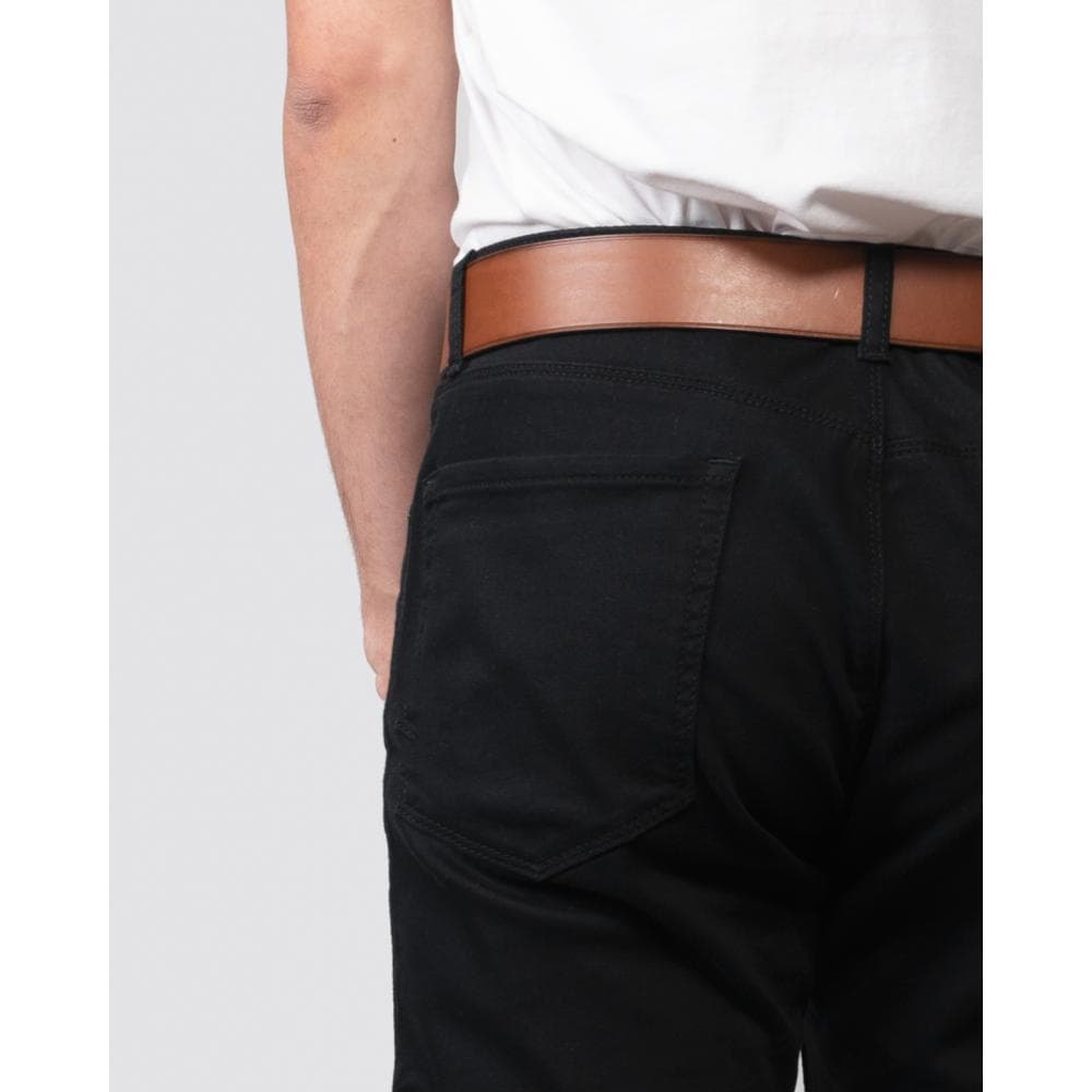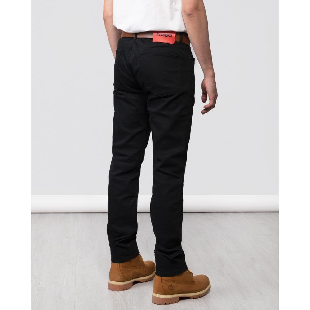 Five-pocket jeans with a regular rise by HUGO Menswear. Cut to a defined fit with a straight leg, these masculine jeans are crafted in comfort-stretch denim rinsed to a versatile black tone. The rear waistband is trimmed with a logo patch in signature red.