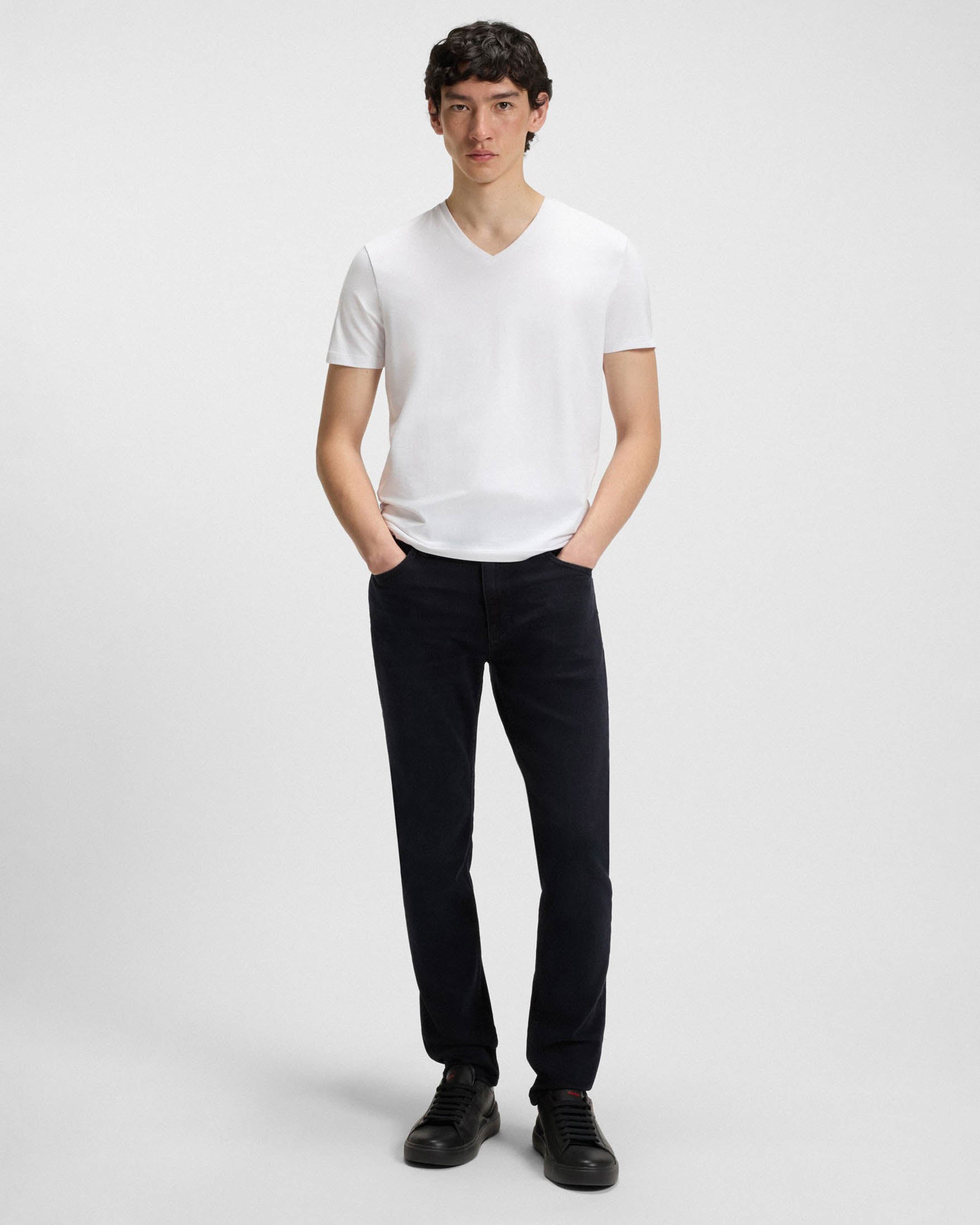 Extra-slim-fitting jeans in a blue-black colour by HUGO Menswear. This mid-rise pair is crafted in stretch denim with subtle used effects.