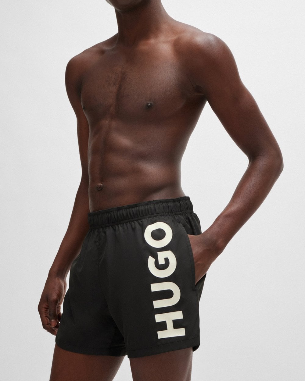 HUGO ABAS Mens Logo-Print Swim Shorts in Quick-Dry Fabric NOS in Black 001