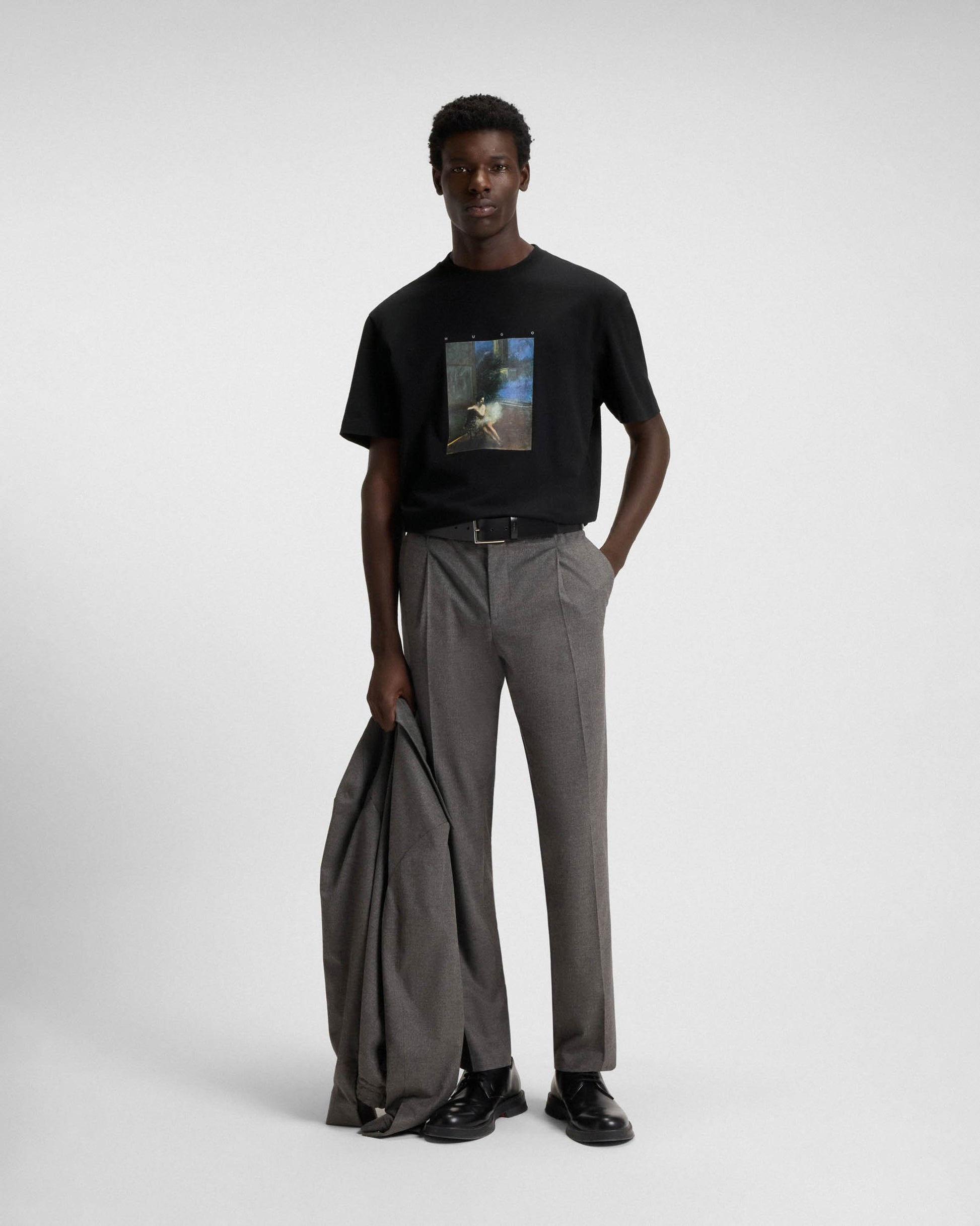 Add impact to casual looks with the statement ballerina artwork of this HUGO Menswear T-shirt. Laid-back fit in comfortable cotton jersey. Logo detail. Featuring artwork from Jean-Louis Forain, as seen in the collection of the Ashmolean Museum, Oxford.