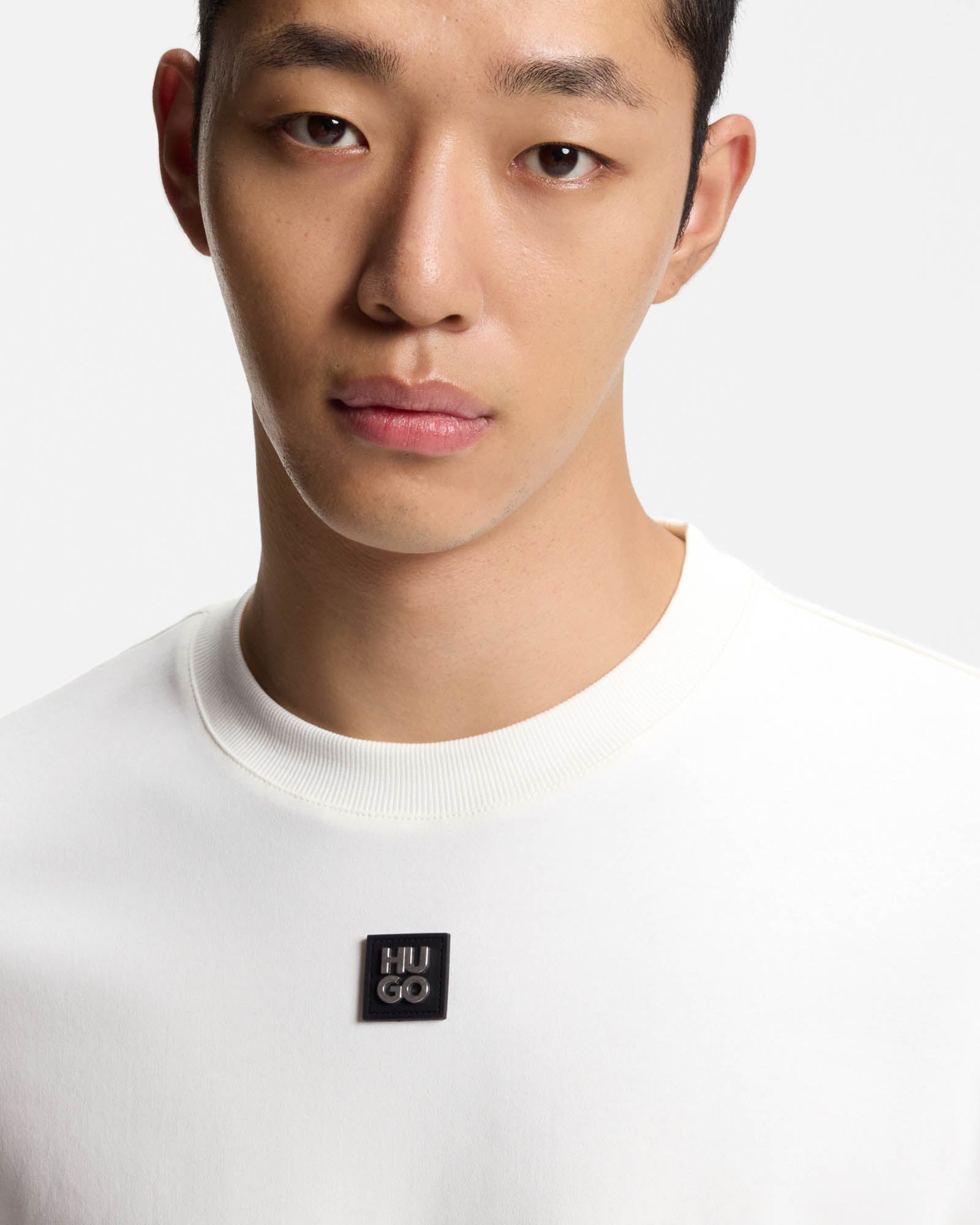A signature T-shirt in a straight fit by HUGO Menswear. Featuring a metal stacked logo, this top is crafted in interlock cotton for comfort.