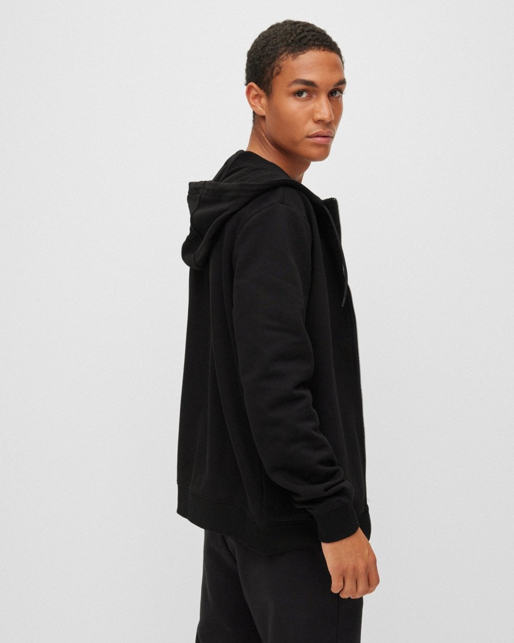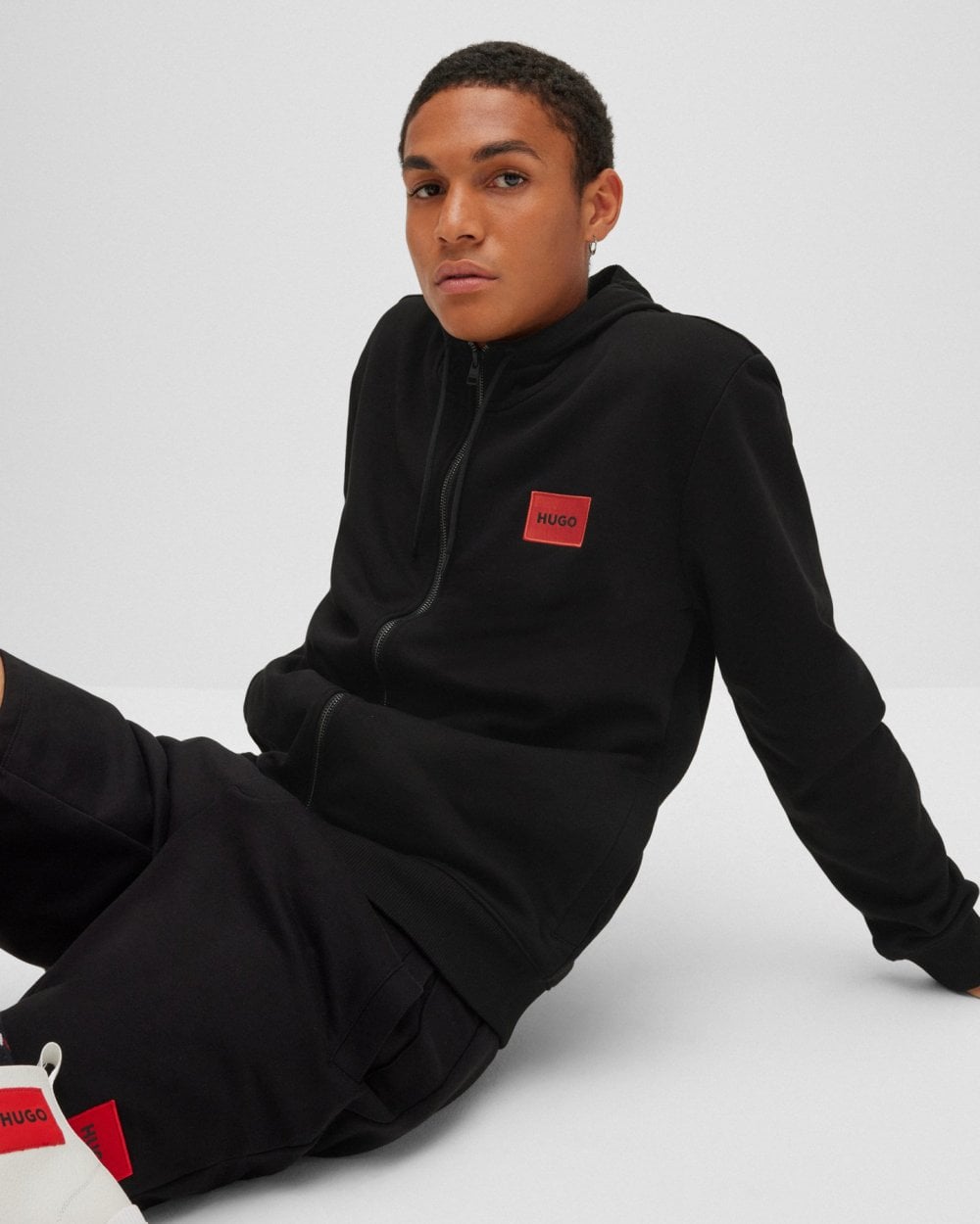 A zip-through sweatshirt in a regular fit by HUGO Menswear. Cut in French terry cotton for casual comfort, this hooded sweatshirt is detailed with a logo patch in HUGO red at the left chest.