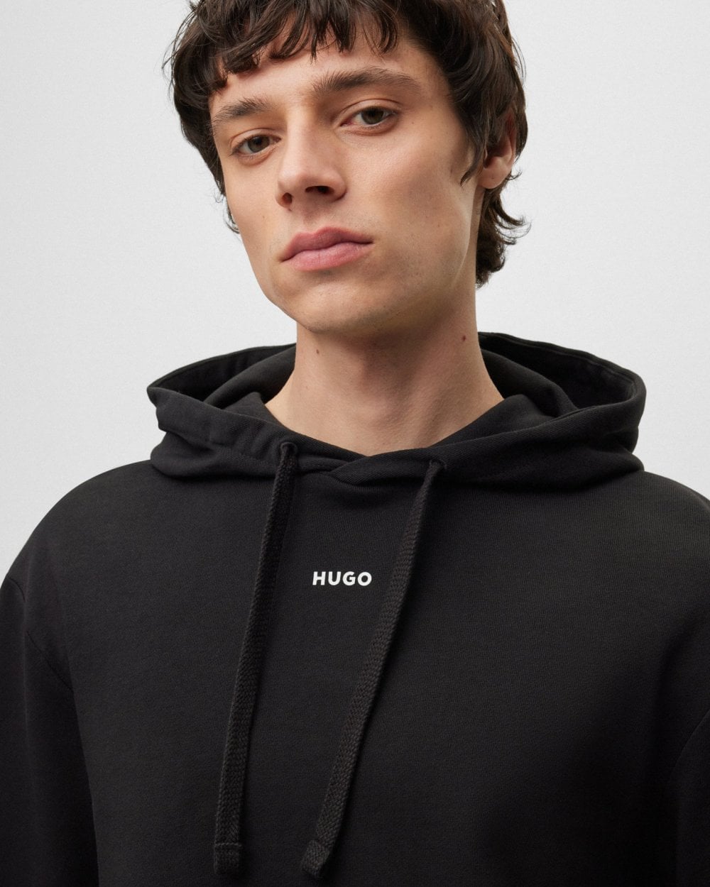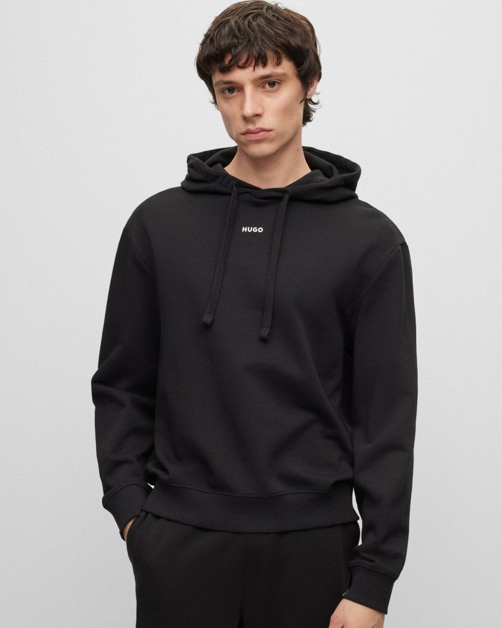 An easy-wear hoodie by HUGO Menswear. Featuring a contrast logo at the centre chest, this hooded sweatshirt is cut to a relaxed fit in super-soft French terry.