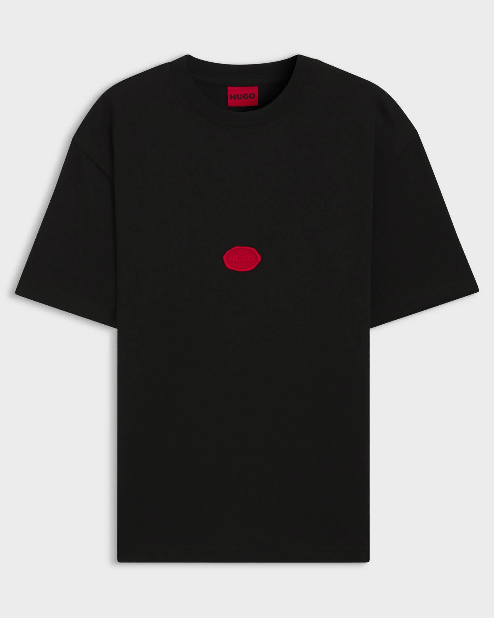 Cut in soft cotton jersey for casual comfort, this HUGO Menswear T-shirt has a statement wax-stamp logo at the centre chest. Relaxed fit.