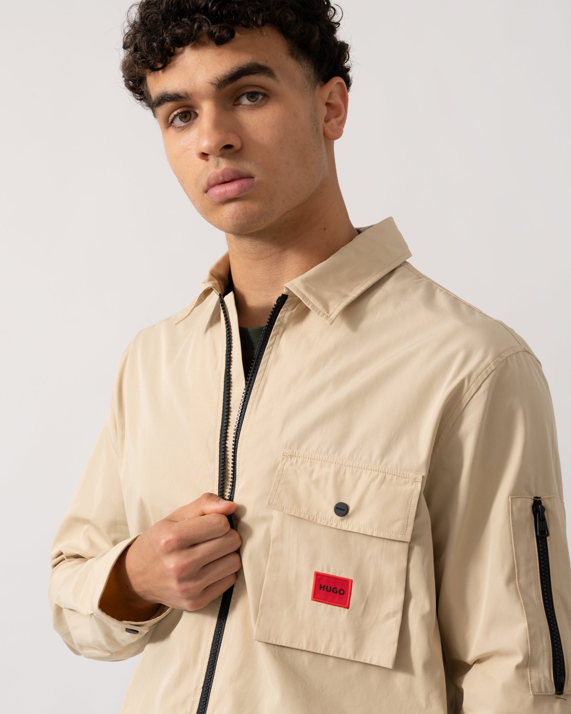 HUGO Emmond Mens Zip Overshirt in Open Beige 285