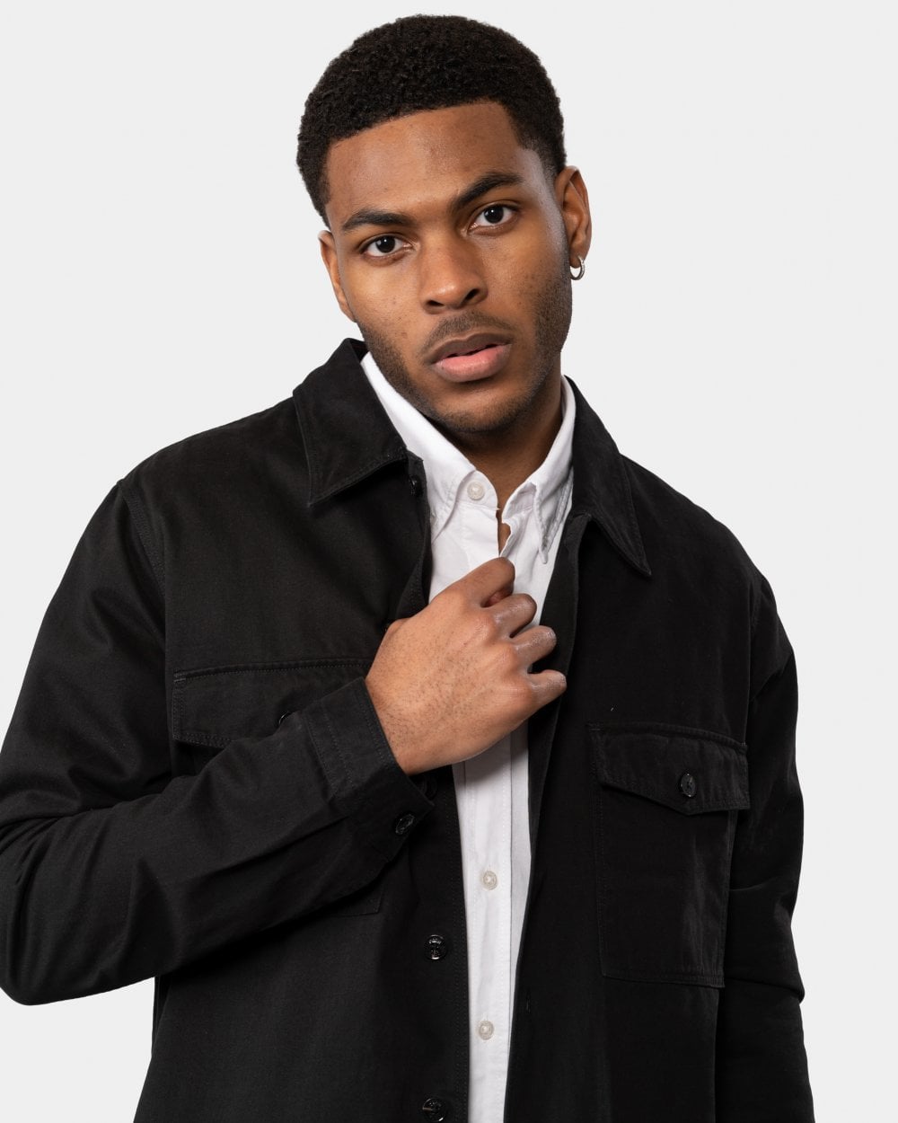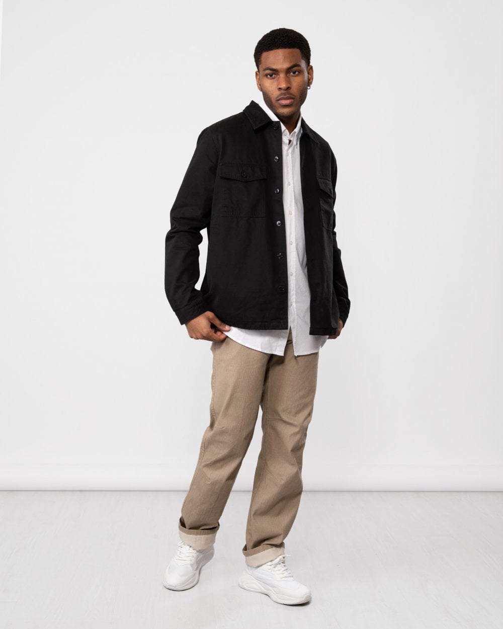 A modern overshirt in a roomy fit by HUGO Menswear. Detailed with contrast buttons, a camp collar and chest pockets, this overshirt is crafted in super-soft cotton twill and trimmed with a logo patch in signature red.