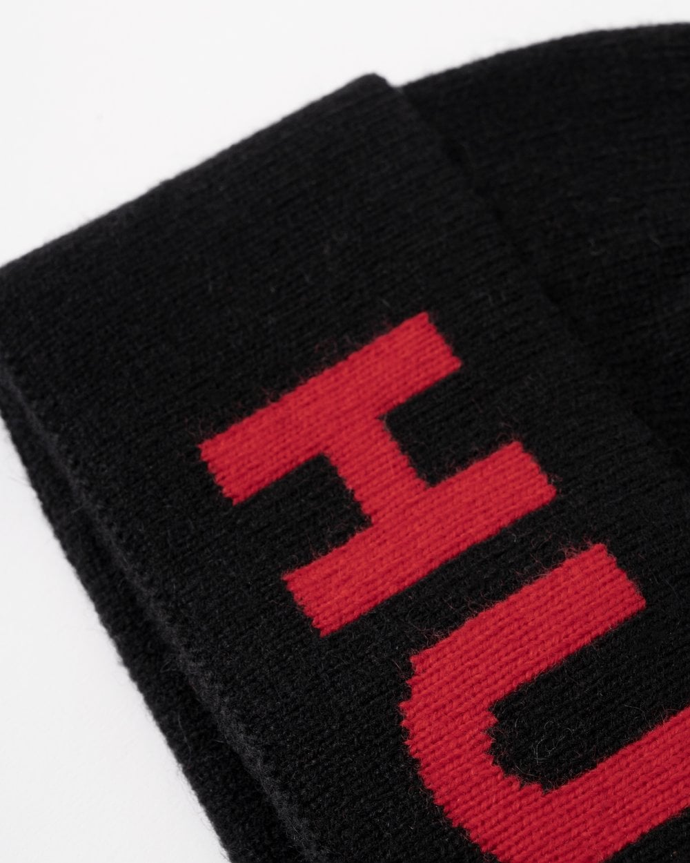 An all-gender knitted beanie hat blended with wool, by HUGO. This accessory features a jacquard-woven HUGO logo incorporating the iconic character of Jack Skellington. From a limited capsule featuring iconography and bold motifs from a cinema classic, Disney's Tim Burton's The Nightmare Before Christmas.