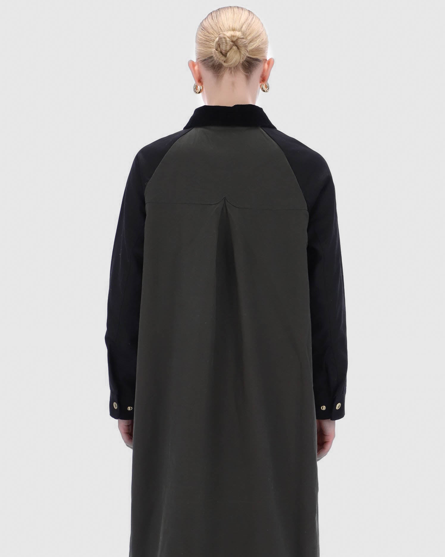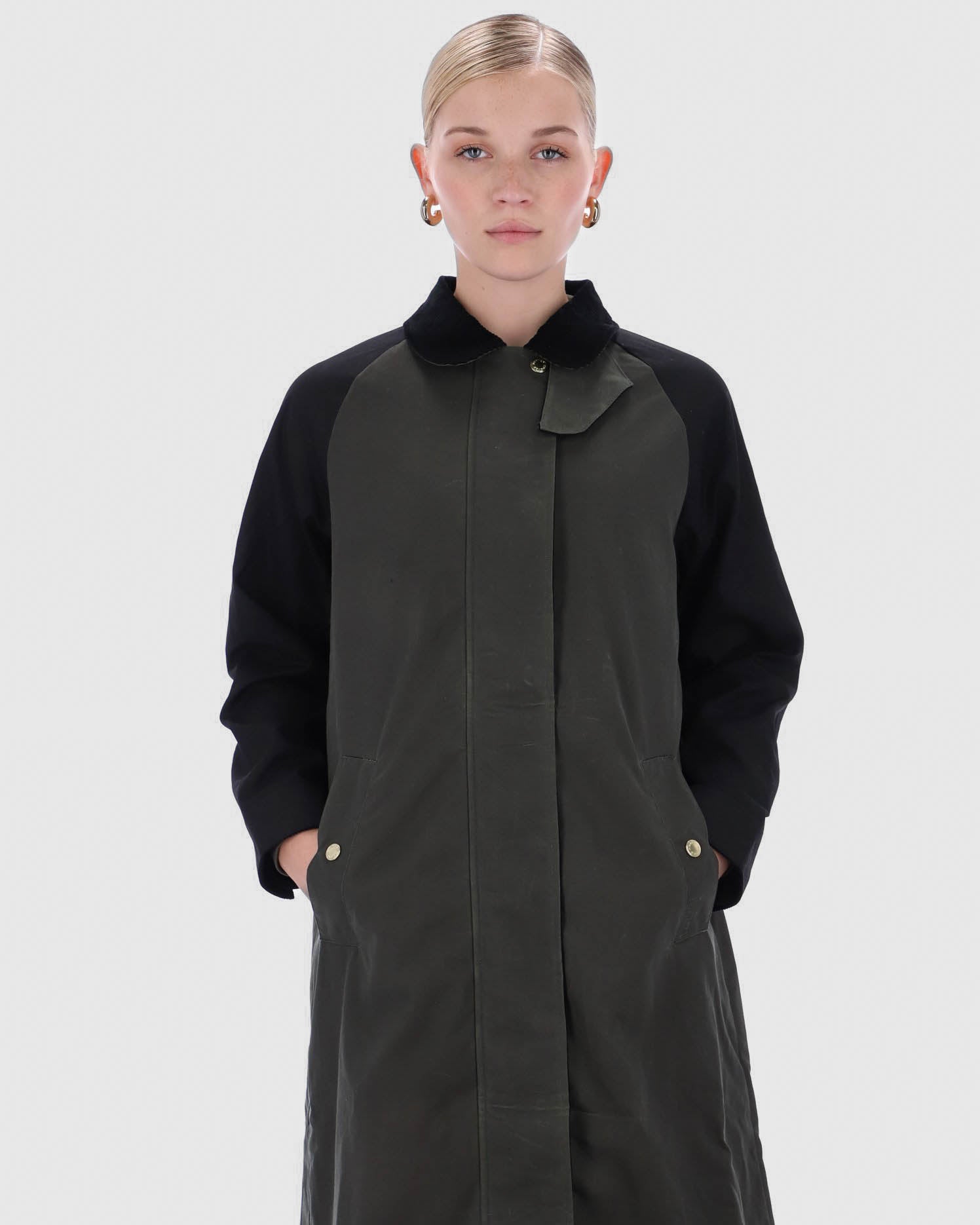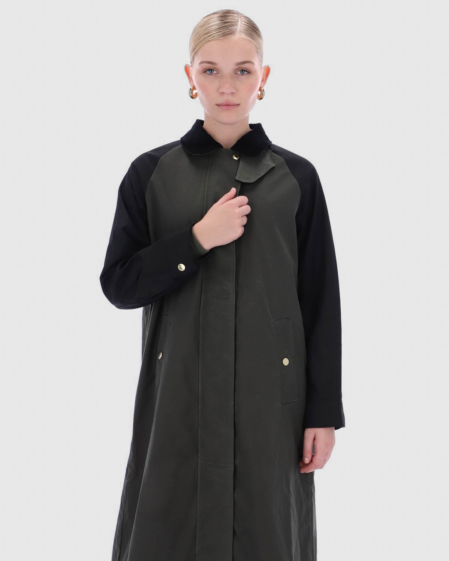 Harrow Patch Colour Block Womens Long Waxed Jacket - Kambaba