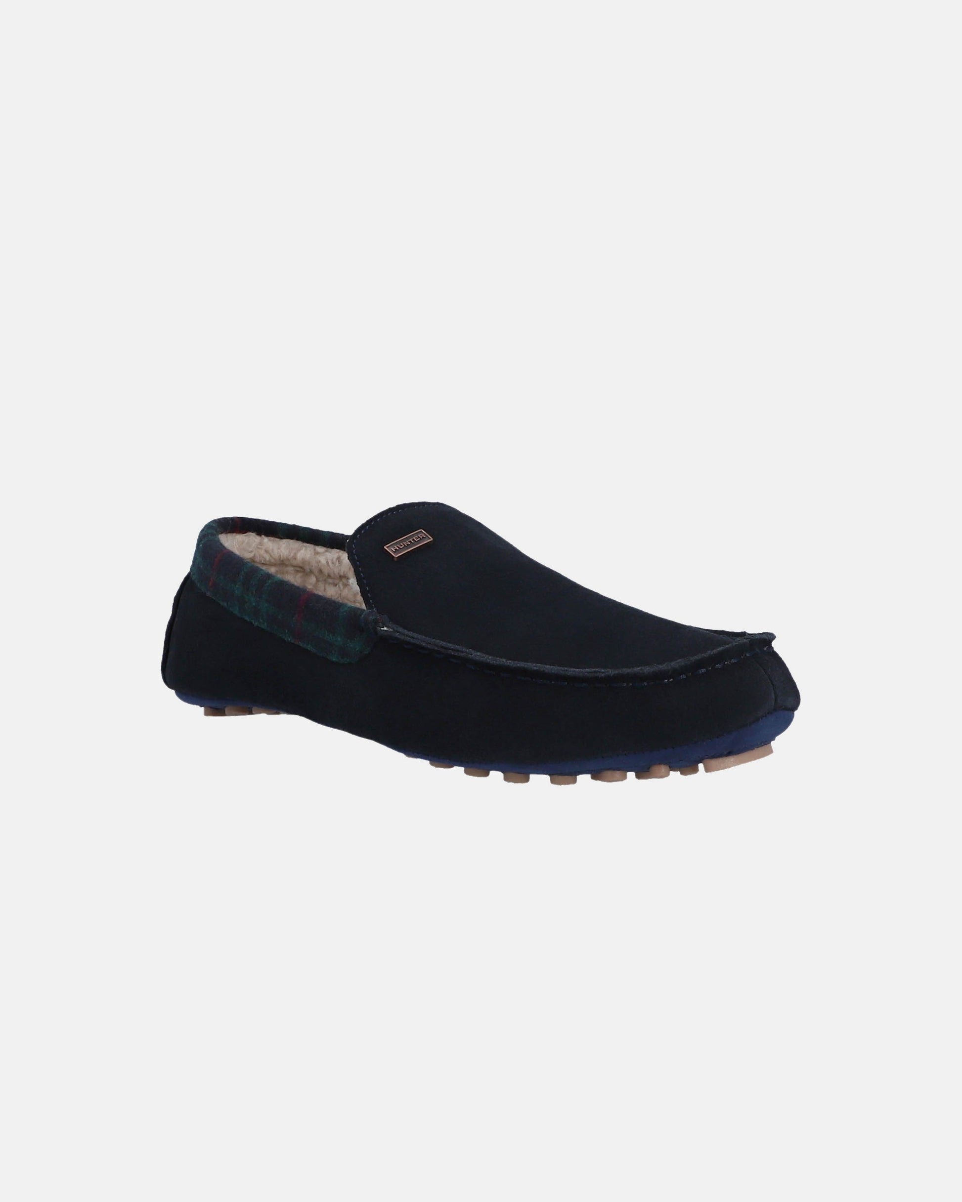 Hunter Mens Moccasin Slipper Tartan Collar - Biscuit - Biscuit
