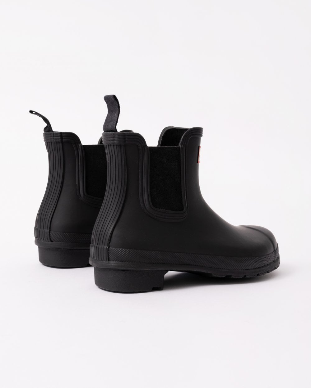 Ready for rain, each Hunter Chelsea Boot is handcrafted from natural rubber and vulcanised for superior protection. Retaining the iconic features of the traditional Chelsea, it features an elasticated-gussets and has a nylon pull tab make for easy wear. The Hunter Original tread pattern and comfortable 100% recycled polyester lining completes the design on this 100% waterproof boot.
