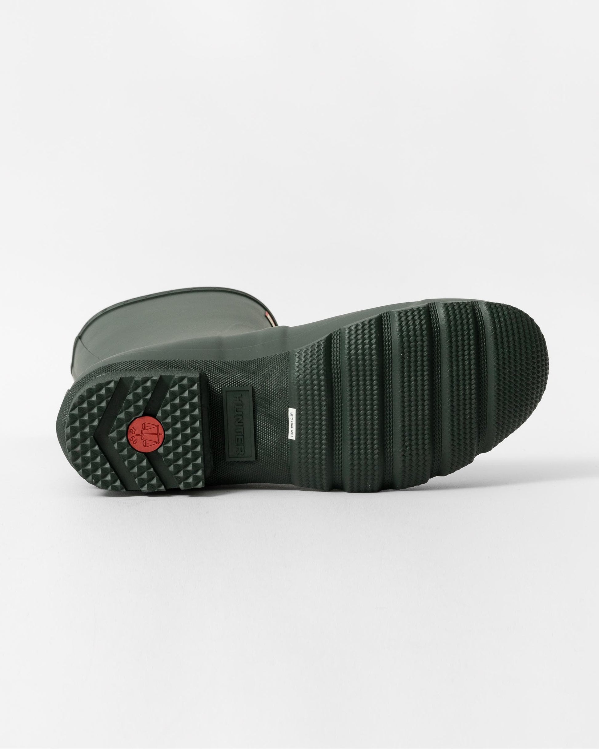 The Men's Original Short Rain Boot is a shorter version of the iconic Hunter Original Tall Boot and perfect for wet-weather conditions. Formed of natural rubber, each boot is handcrafted and assembled over three days before being vulcanised for superior protection. The Hunter Original tread pattern and comfortable 100% recycled polyester lining completes the design on this 100% waterproof boot.