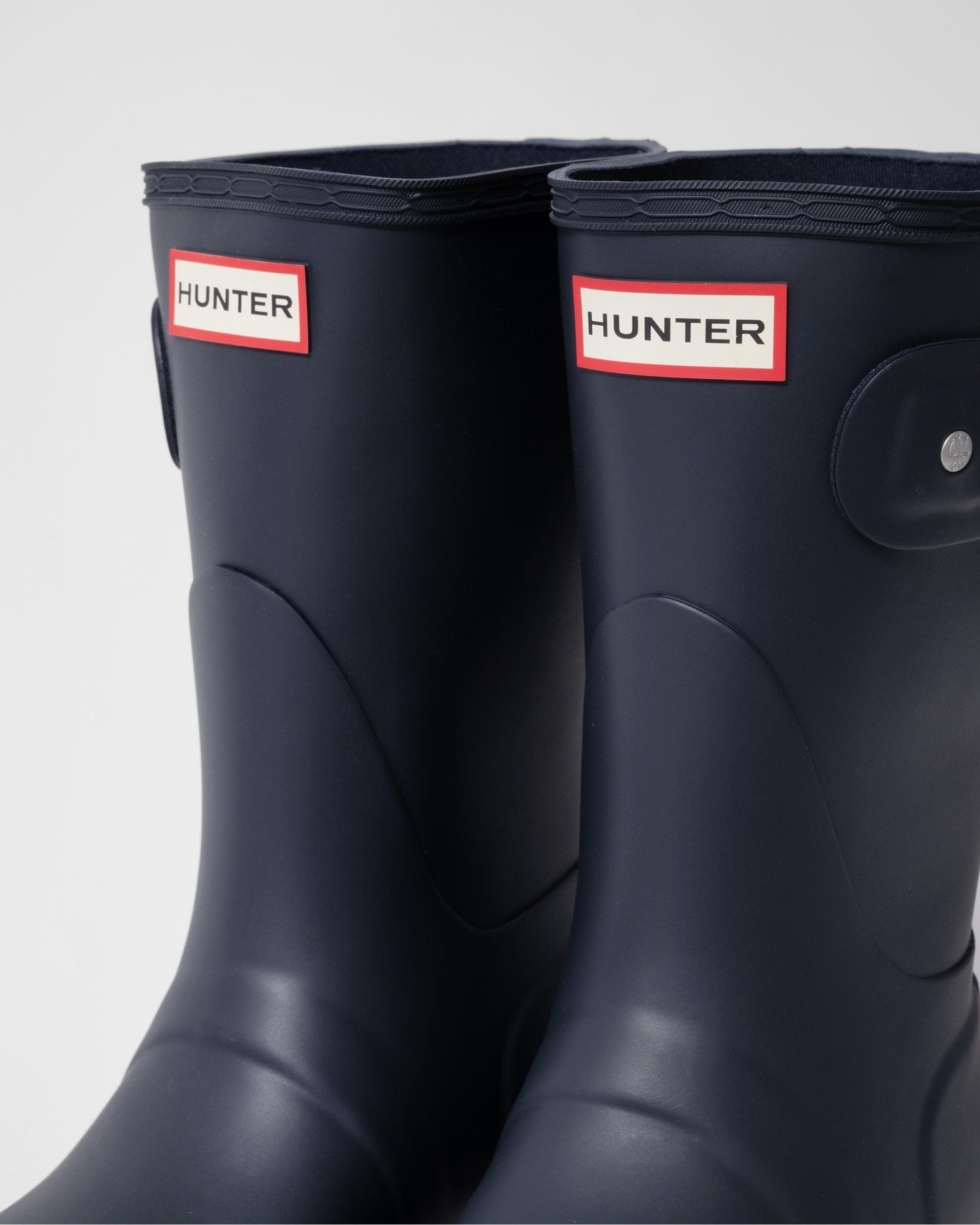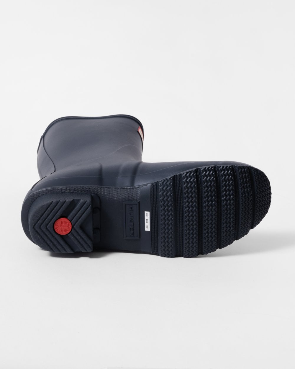 Perfect for wet weather conditions this women's Wellington Boot is a shorter version of the iconic Hunter Original Tall Boot. Formed of natural rubber, each boot is handcrafted and assembled over three days before being vulcanised for superior protection. Featuring the Hunter Original tread pattern, and a comfortable polyester lining, this black welly boot is a rainy-day necessity.