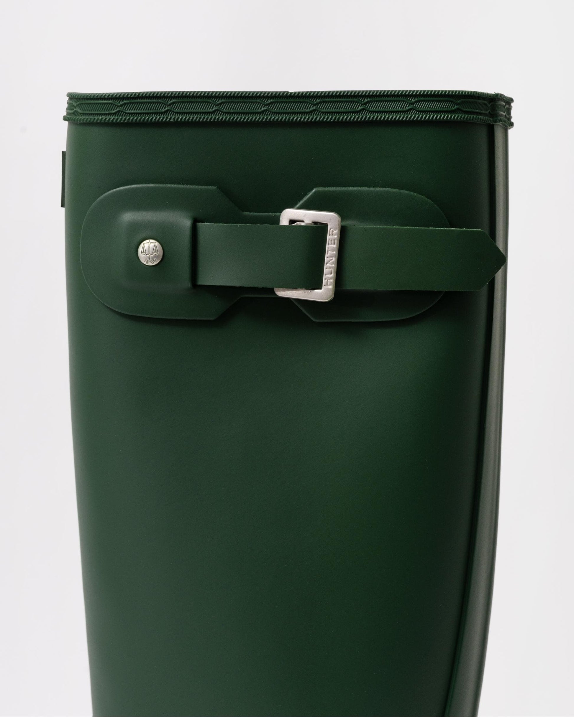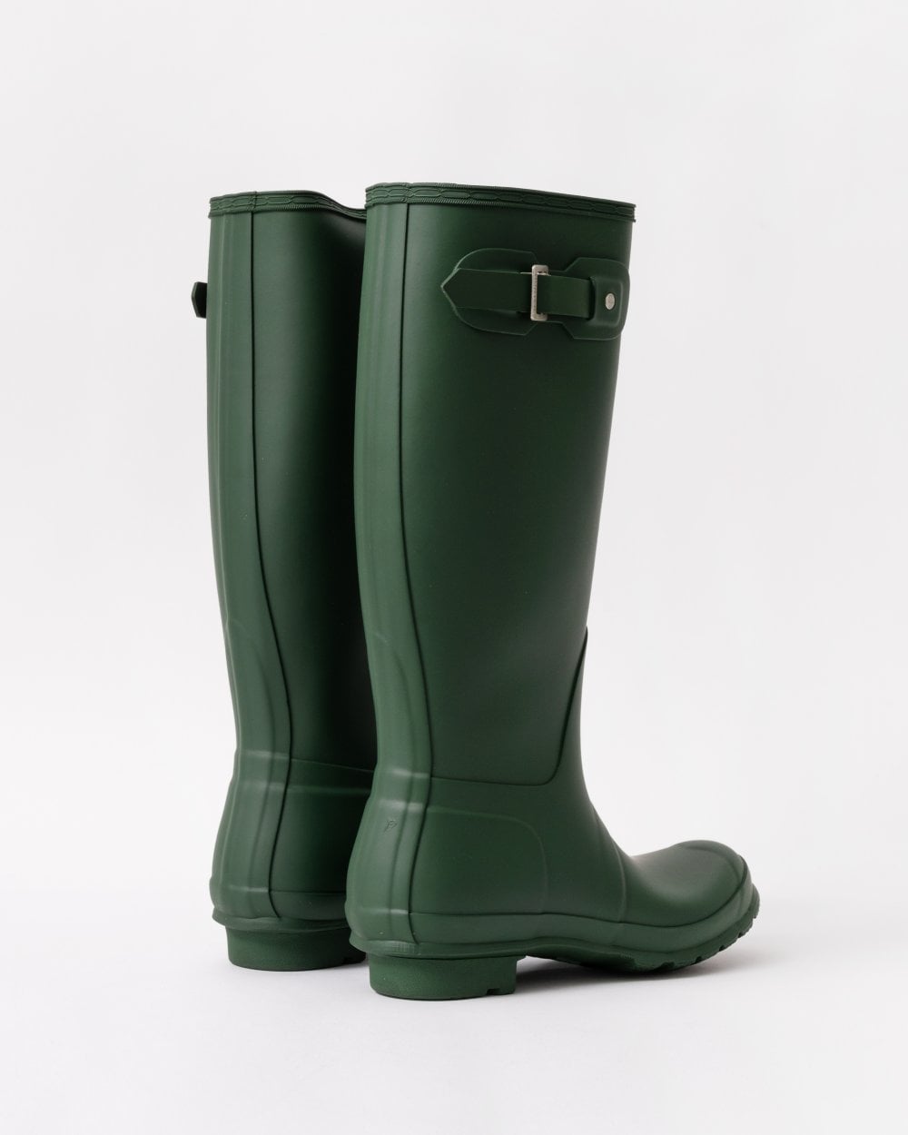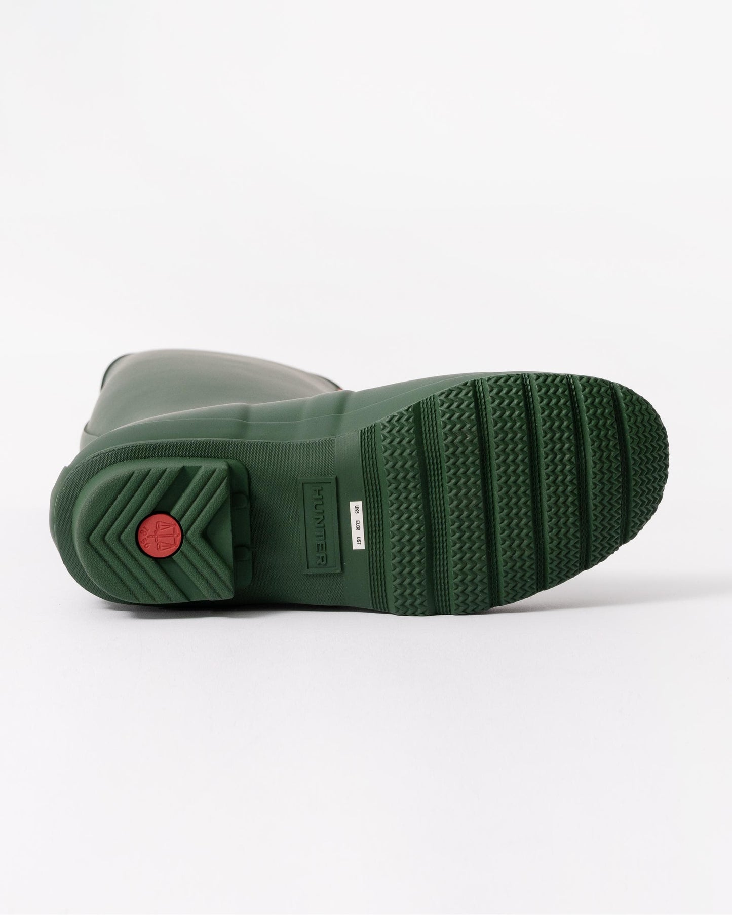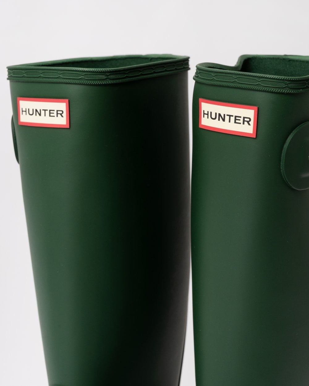 Perfect for wet weather conditions, this women's Wellington Boot has been at the heart of the Hunter Original brand since its introduction in 1956. Formed of natural rubber, each pair is made from 28 hand-cut parts and assembled over three days on an aluminium last bespoke to Hunter, before being vulcanised for superior protection. Featuring the Hunter Original tread pattern, and a comfortable polyester lining, these tall black welly boots are a rainy-day necessity.