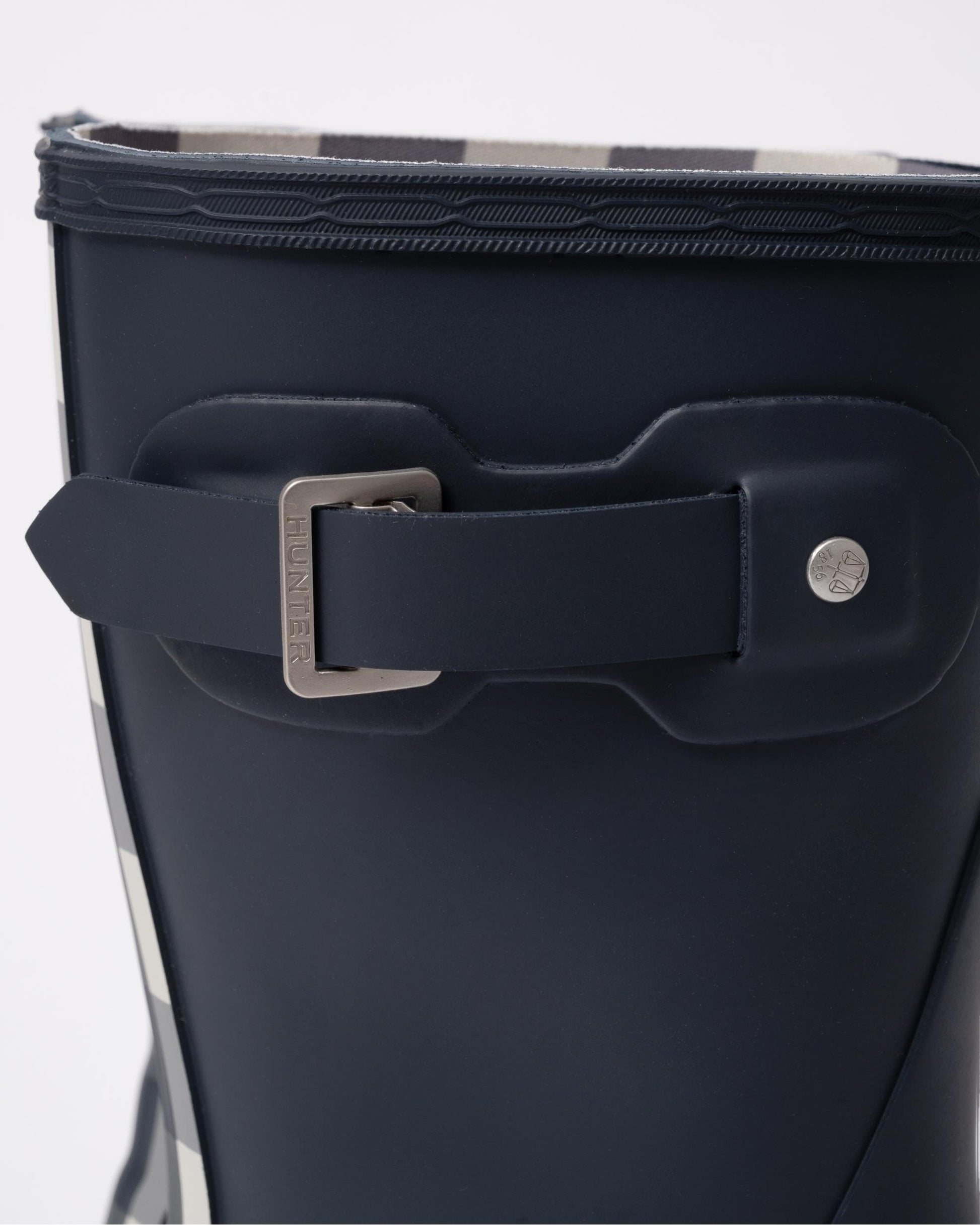 An update for Spring, this season the iconic Original Short is updated with a new Gingham print along the backstrap and lining. Formed of natural rubber, each boot is handcrafted and assembled over three days before being vulcanised for superior protection. Featuring the Hunter Original tread pattern, and an updated 100% recycled polyester lining and insole, this waterproof gingham welly boot is a rainy-day necessity.