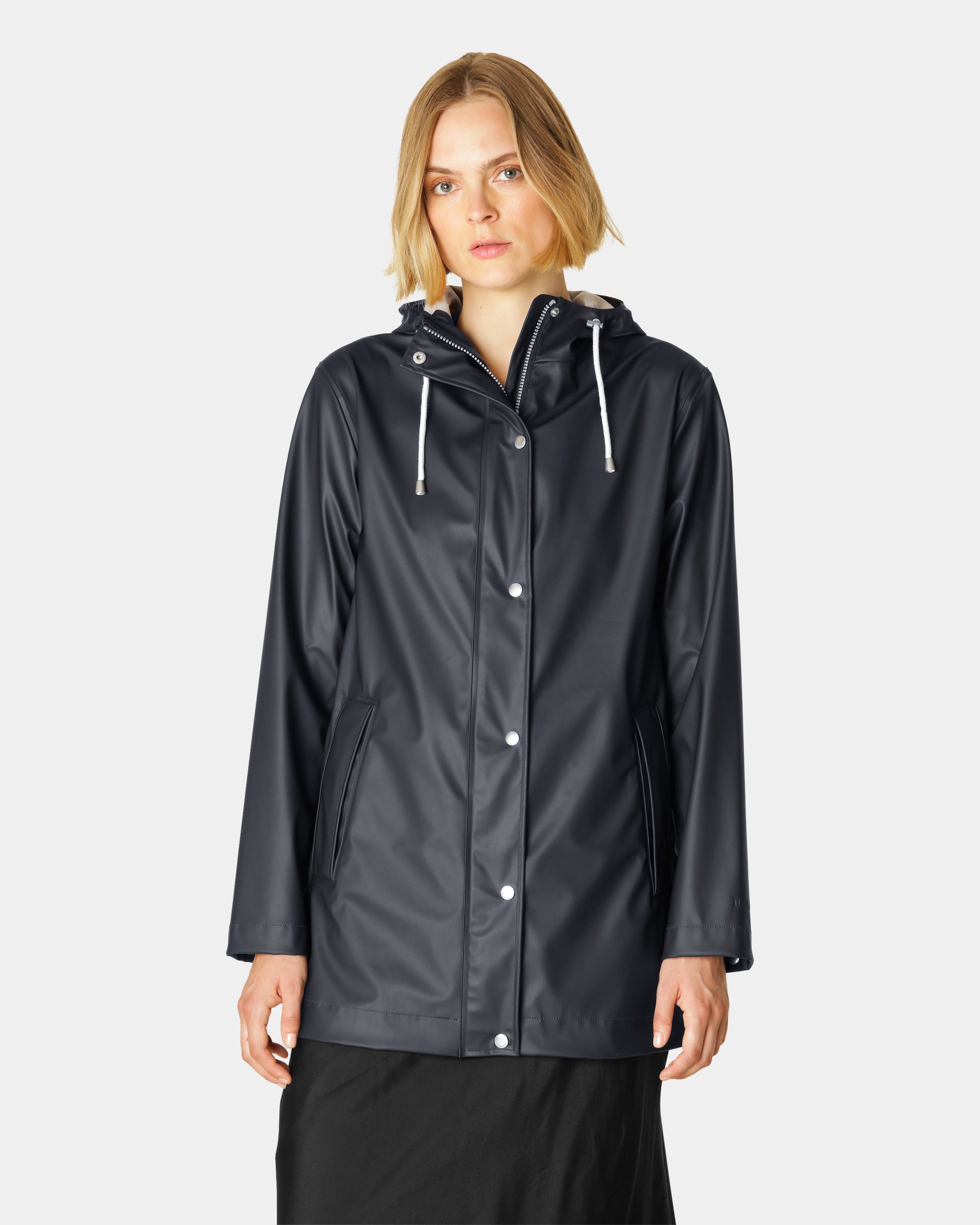 A straight-fit waterproof raincoat crafted from durable, lightweight rubberized PU-coated fabric. Tailored with welded seams for full rain protection and a tricot-backed interior for added comfort. The adjustable drawstring hood ensures enhanced protection, while underarm eyelets improve breathability for added comfort in challenging weather. Offering reliable weather protection with a waterproof rating of 5,000 mm.