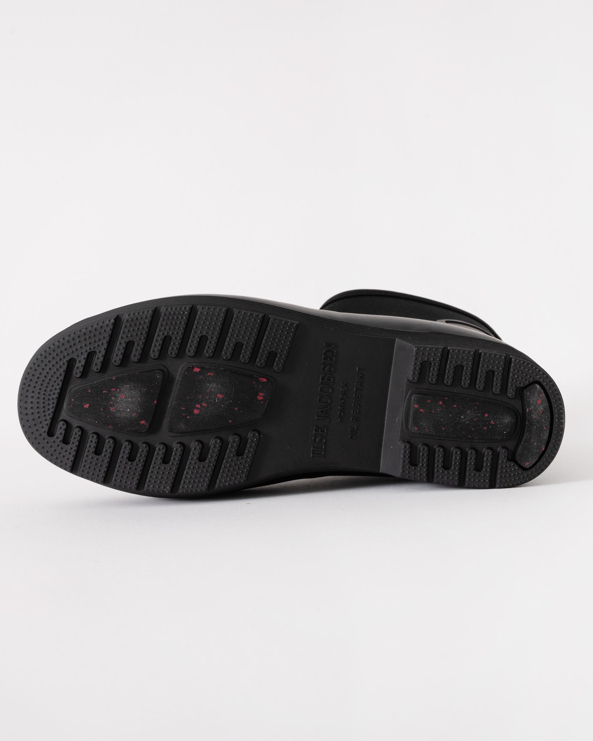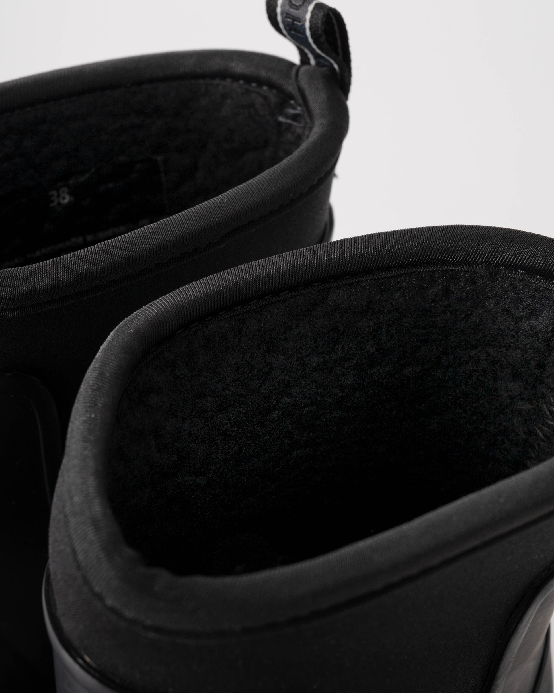 These versatile waterproof rain boots is designed for easy on/off with a neoprene shaft and a comfortable soft top binding, ensuring chafe-free wear. Inside, the warm wool lining keeps you cozy, while the lightweight EVA and rubber sole guarantees excellent grip even in wet conditions. For added safety this style has a reflective band at the back and a reflective logo enhance visibility. Don't let the weather disrupt your day, step out confidently in style and warmth.