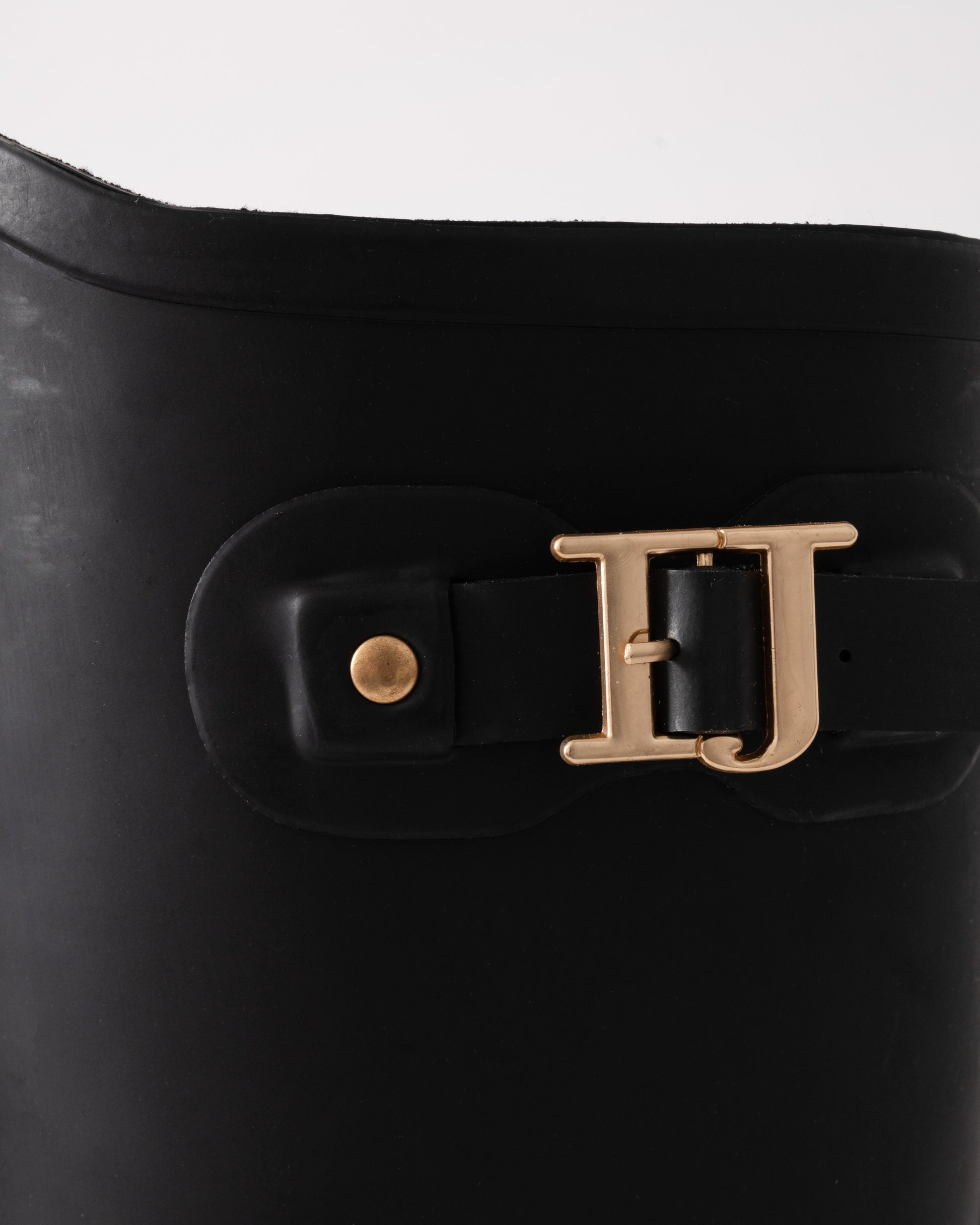 High-Shaped knee length wellingtons. A combination of style and functionality for rainy days. Featuring a decorative D-ring at center back and logo on the shaft. Strap with a metal logo buckle. The lightweight sole, crafted from EVA and rubber, ensures excellent traction on wet surfaces. The tone-on-tone design of the upper and sole adds a touch of sophistication to any rainy day outfit.