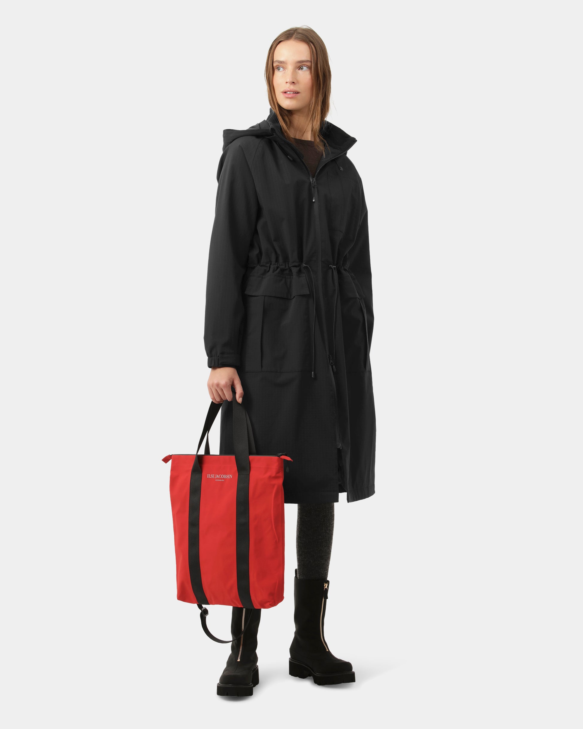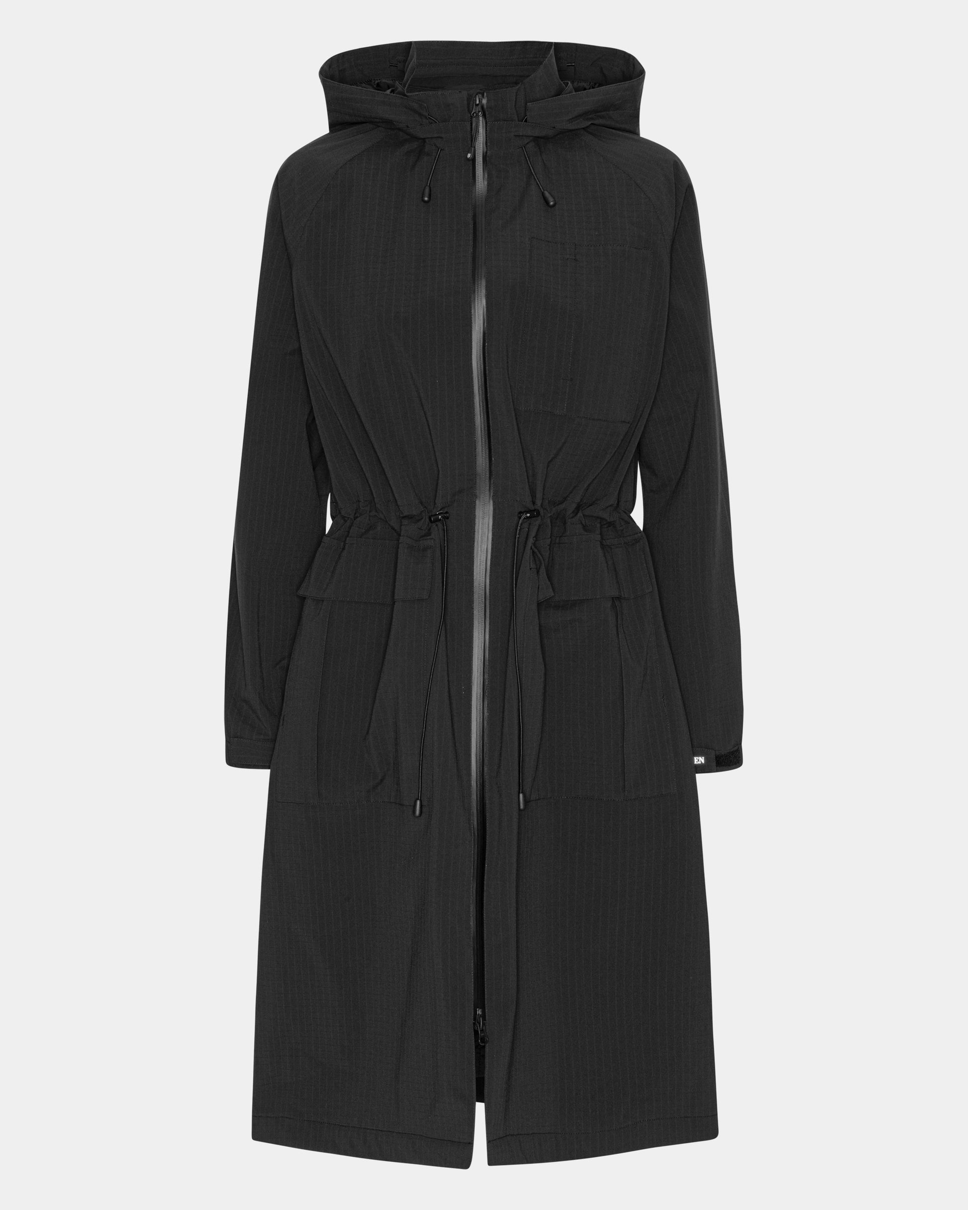 Introducing the THERMAL01 parka raincoat designed for extreme weather, cold temperatures and heavy downpours. Crafted from robust ripstop fabric, this raincoat features an impressive 20,000mm water resistance, 20,000 g/m2 breathability and exceptional insulation. Lined with Meida® thermal padding, this coat provides warmth, without adding additional bulk. The coat's loose fit, raglan sleeves, oversized patched pockets and the option to adjust waist make it a perfect choice for the contemporary woman on the move.