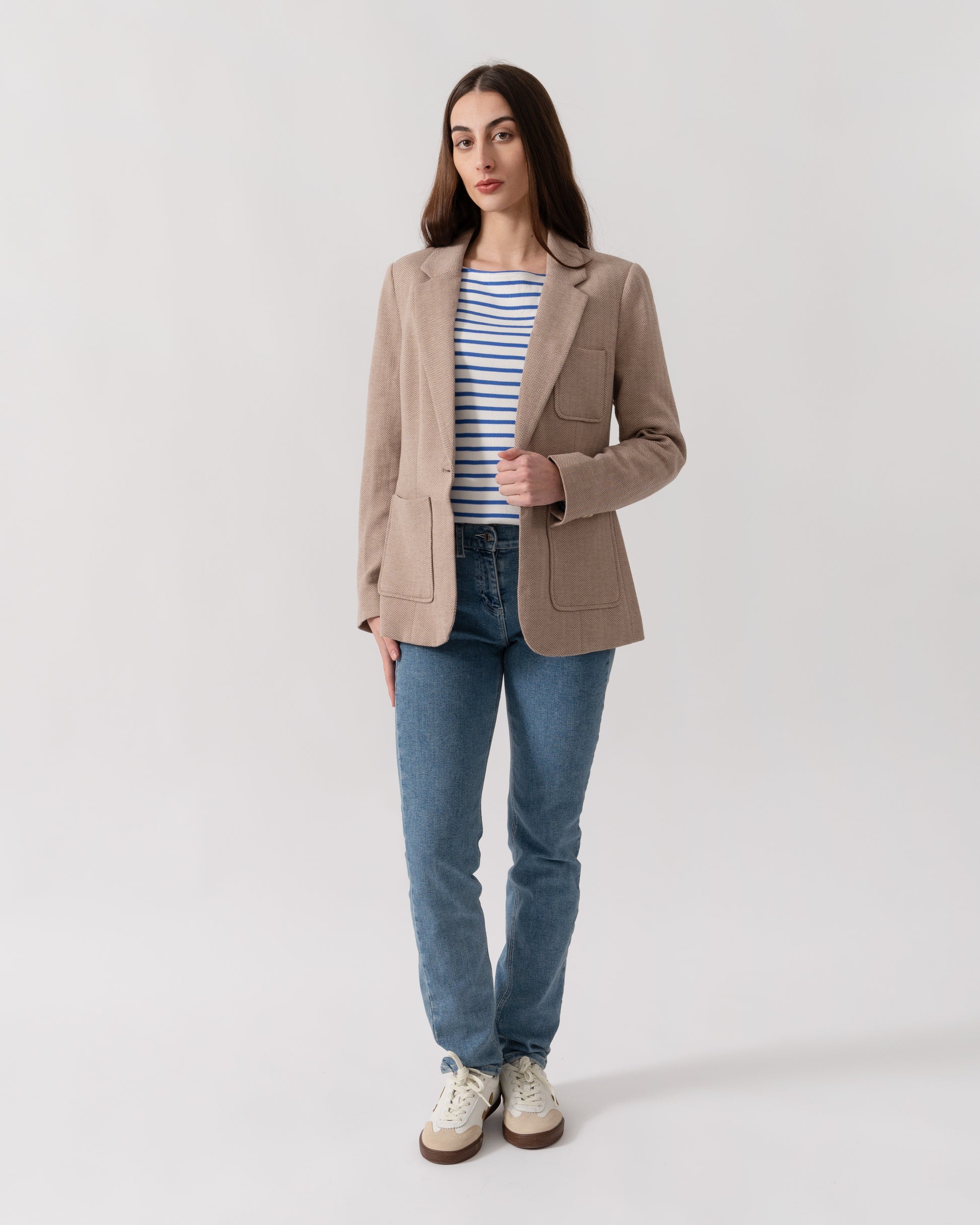 Tailored yet comfortable, timeless yet modern, the Albury blazer is a wardrobe staple made for effortless layering. Designed in jersey tweed, it offers the refined look of traditional tailoring with the ease and stretch of jersey, making it ideal for everyday wear. Featuring a set-in sleeve for a flattering fit and a front dart detail for shaping, every detail is considered. Pockets add a touch of utility, while the under-collar embroidery delivers a hidden pop of personality that’s distinctly Joules.
