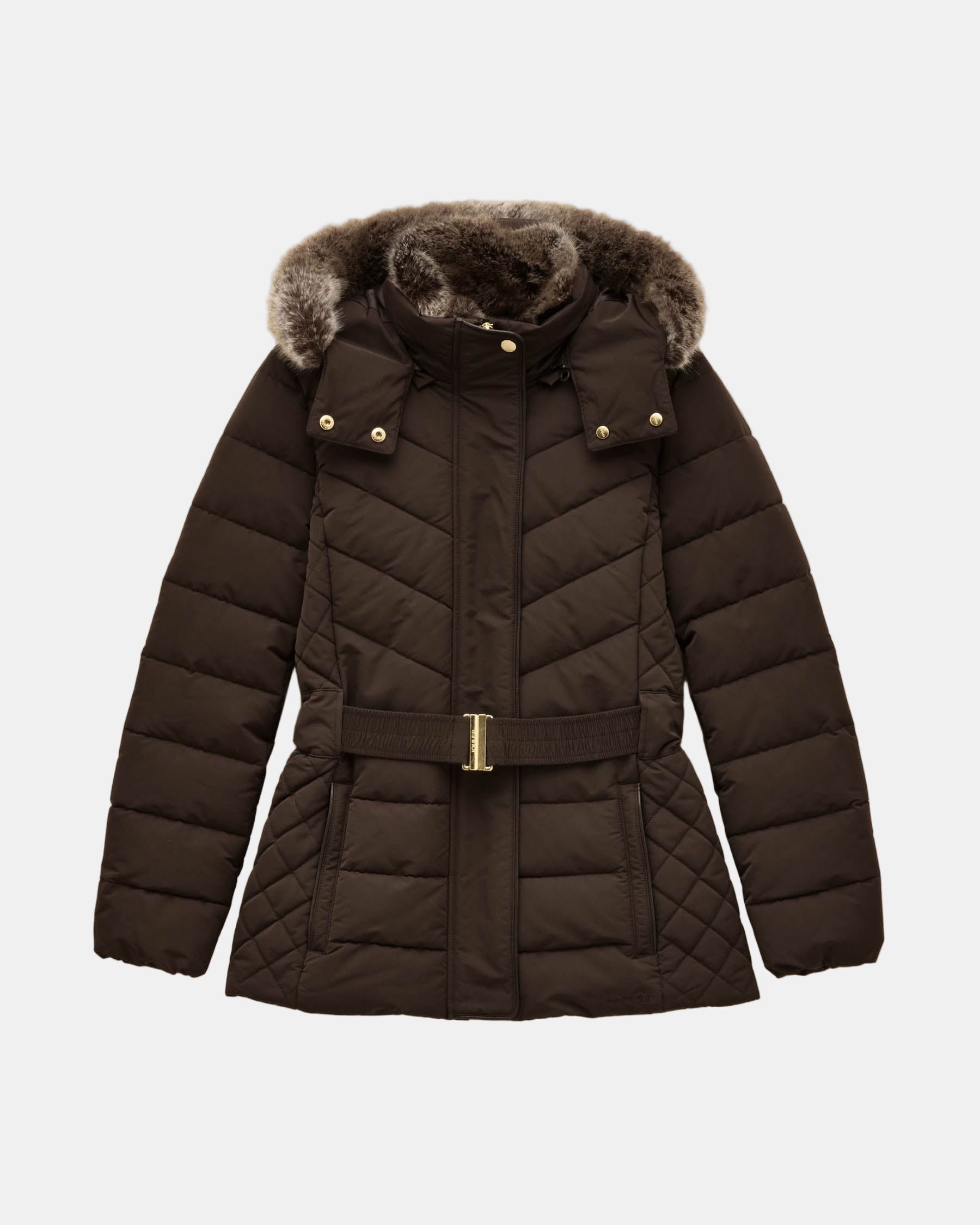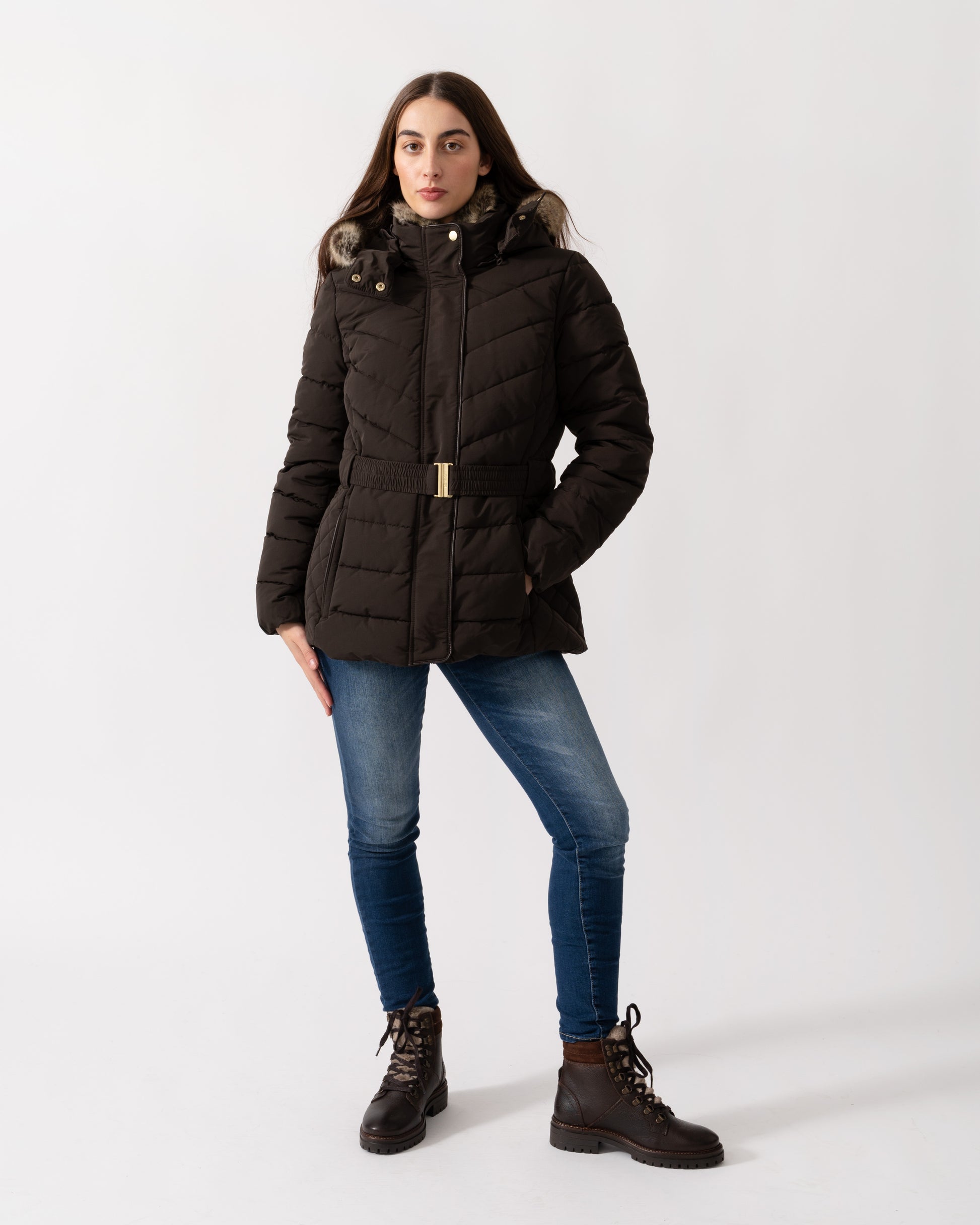 Main 100% SORONA® polyester. Lining 100% Polyester. Wadding 100% Recycled polyester. Artificial Fur 53% Modacrylic, 30% Acrylic, 17% Polyester.