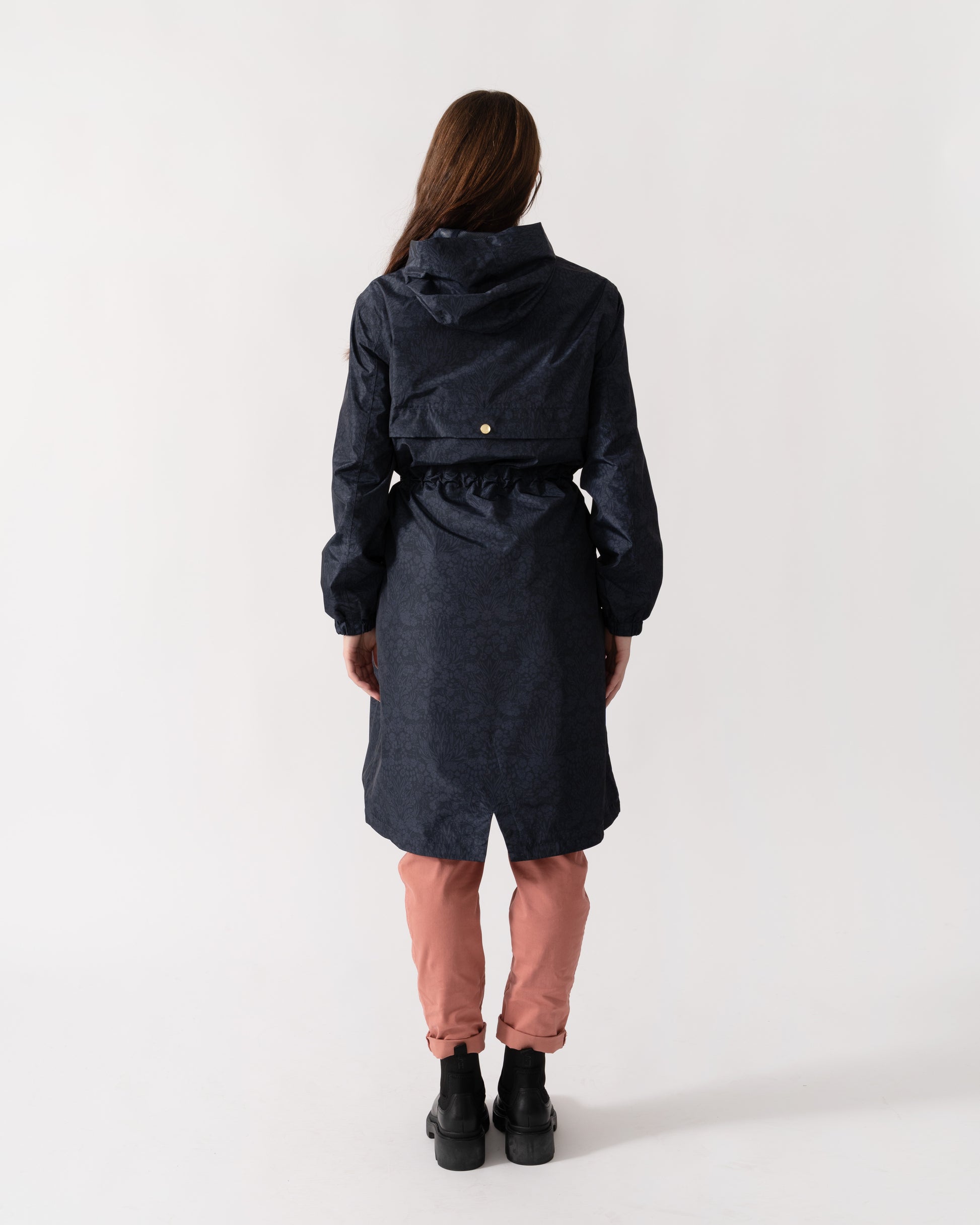 Holkham Womens Packable Printed Raincoat - Navy Floral Tonal