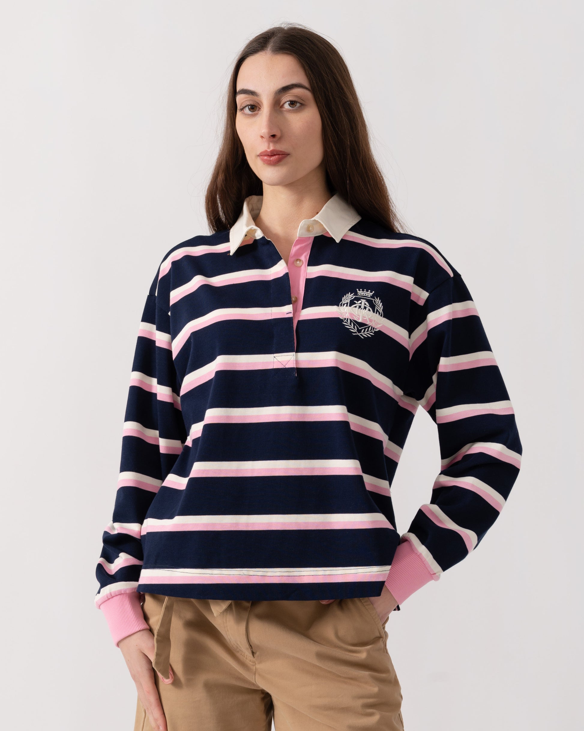 Lara Womens Rugby Shirt - Navy/Pink
