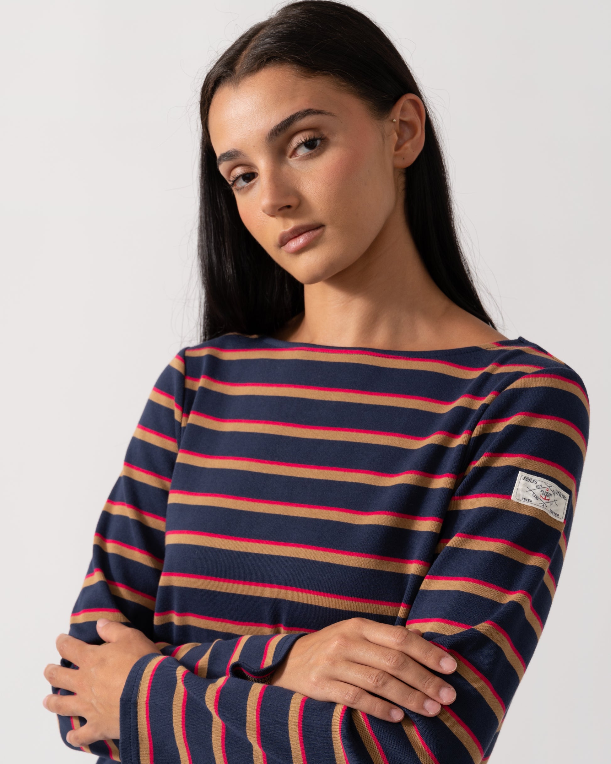 New Harbour Womens Striped Breton Top - Tan/Navy Multi