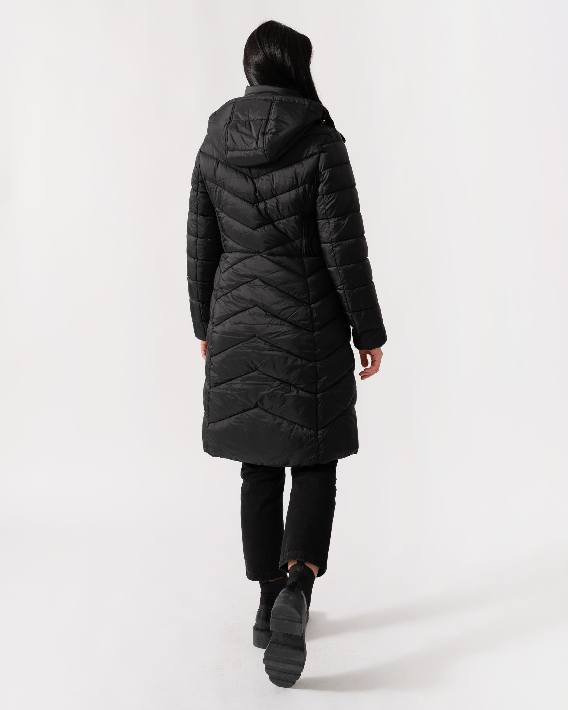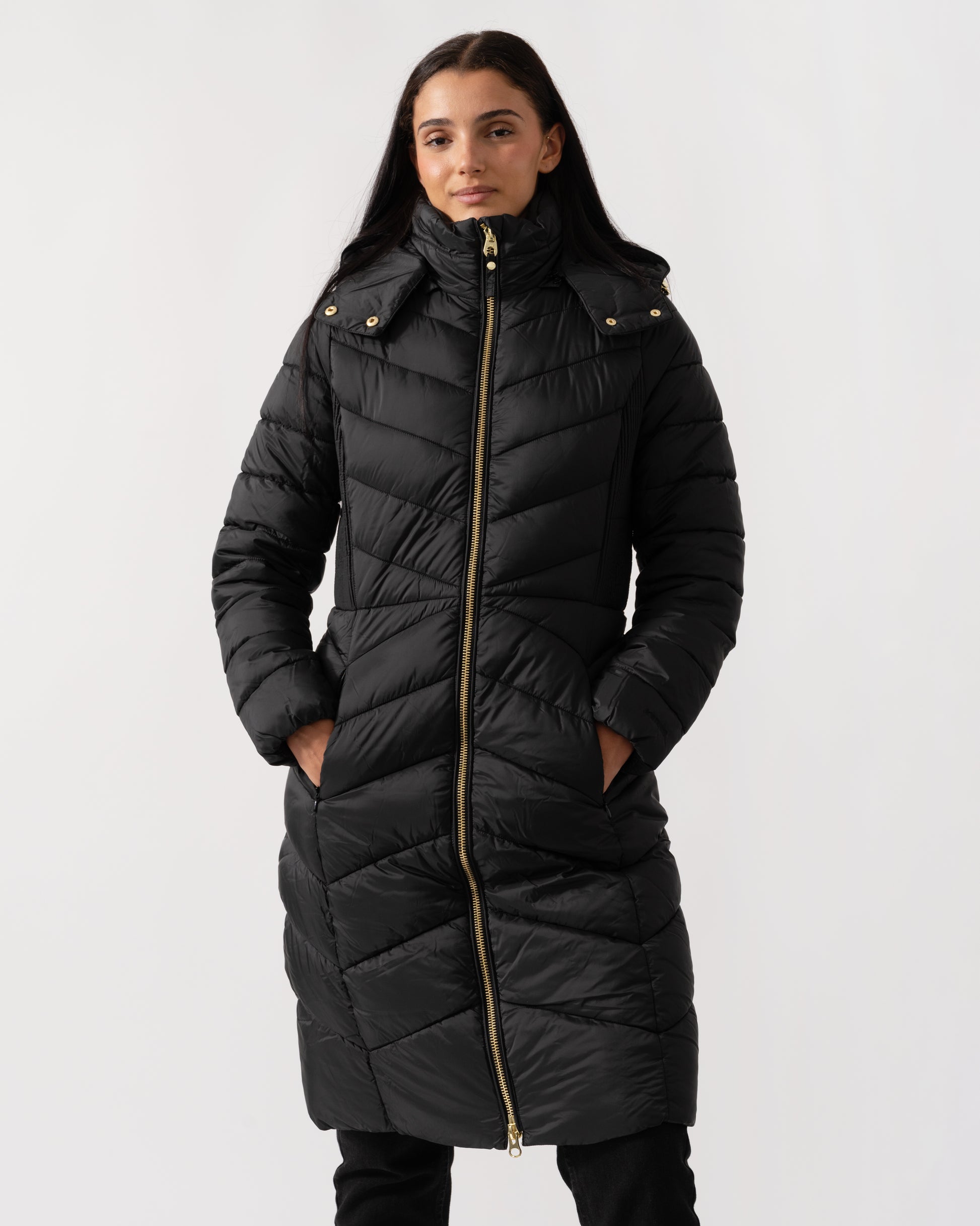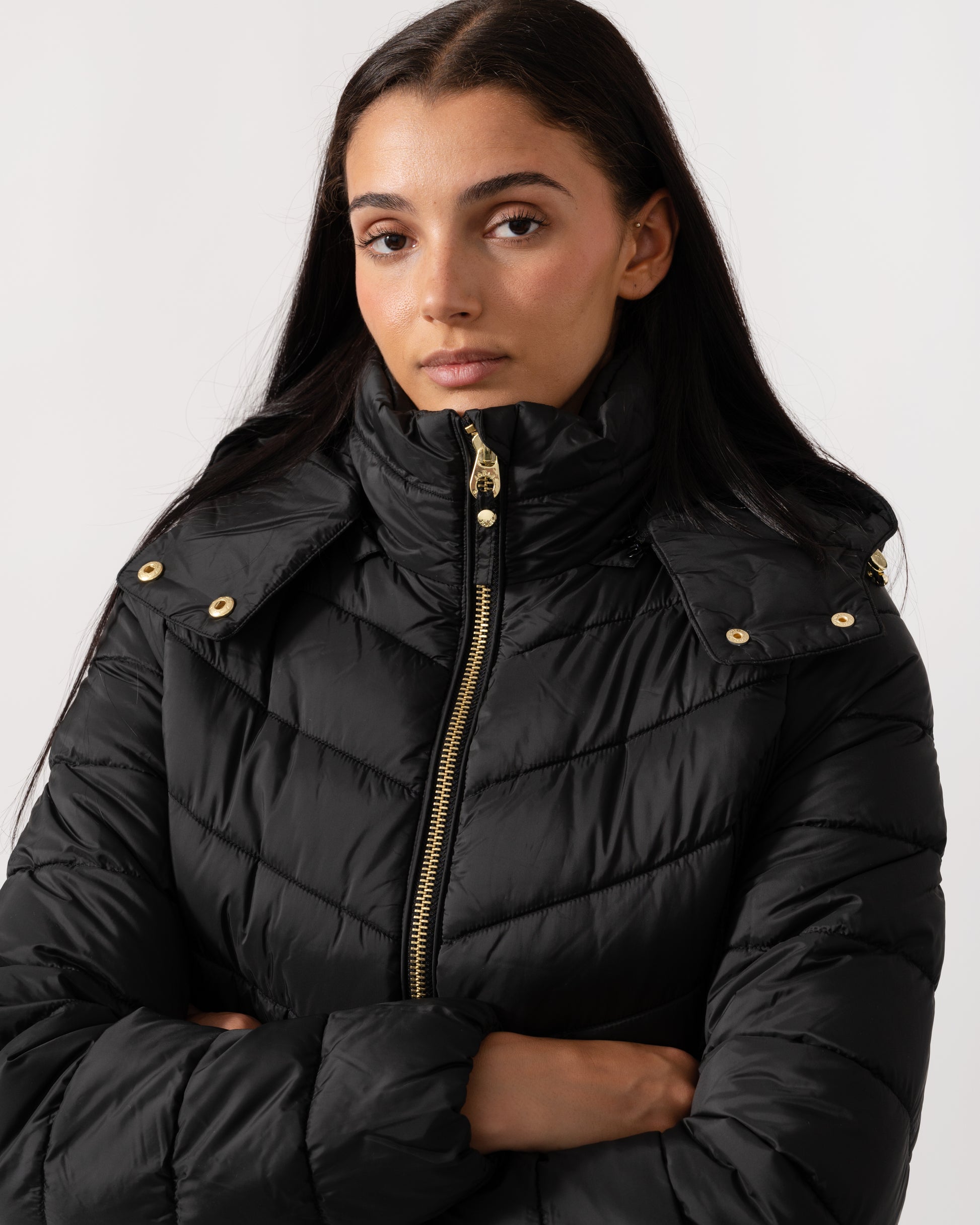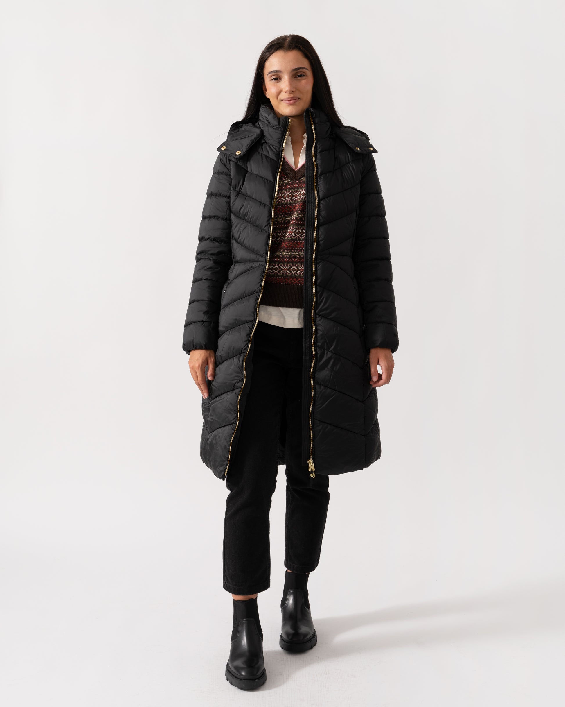 Cut to a longline length for all-over warmth, Pembury is a true cold-weather wonder. With shirred side panels, slimmer chevron baffles to the waist and curved seams to the centre to balance out its shape for a more flattering fit. The fabric has a soft-to-touch pearlised finish that's also showerproof, making it perfect for light bursts of rain, and the hood is detachable so you can decide your level of protection before you head out. The high neck and chin guard with popper fastenings also add an additional touch of coverage to hide behind when the wind starts to whistle on through. You'll find two invisible zip pockets to each side too.