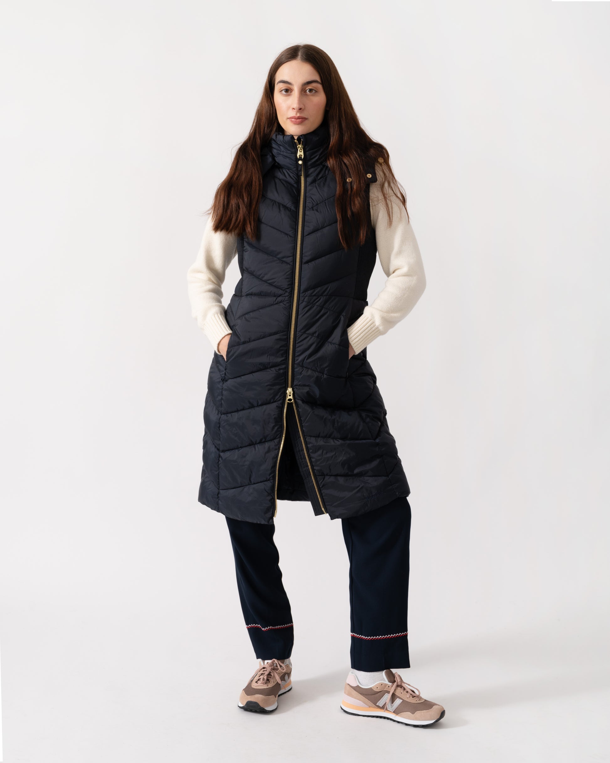 Stay warm, dry, and effortlessly put-together with the Pembury — a longline gilet designed to weather the elements in style. With a sleek, showerproof outer, it’s your go-to layer for crisp walks, school runs, and everything in between. Thoughtfully designed with a detachable hood and internal adjusters, you can tailor your coverage to suit the day