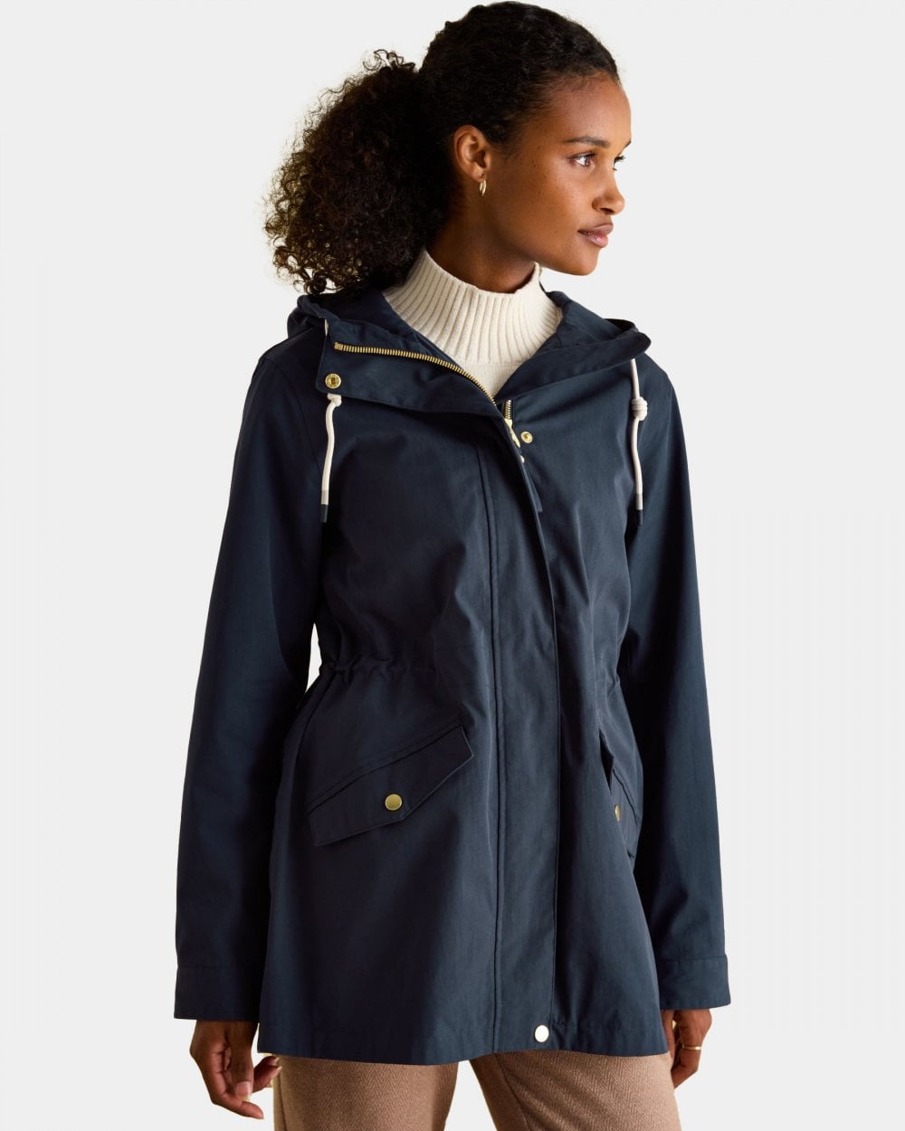 An adjustable waist with internal toggles allows you to cinch the coat in for a flattering fit, while a concealed zip and popper fastening creates a clean, sleek finish.