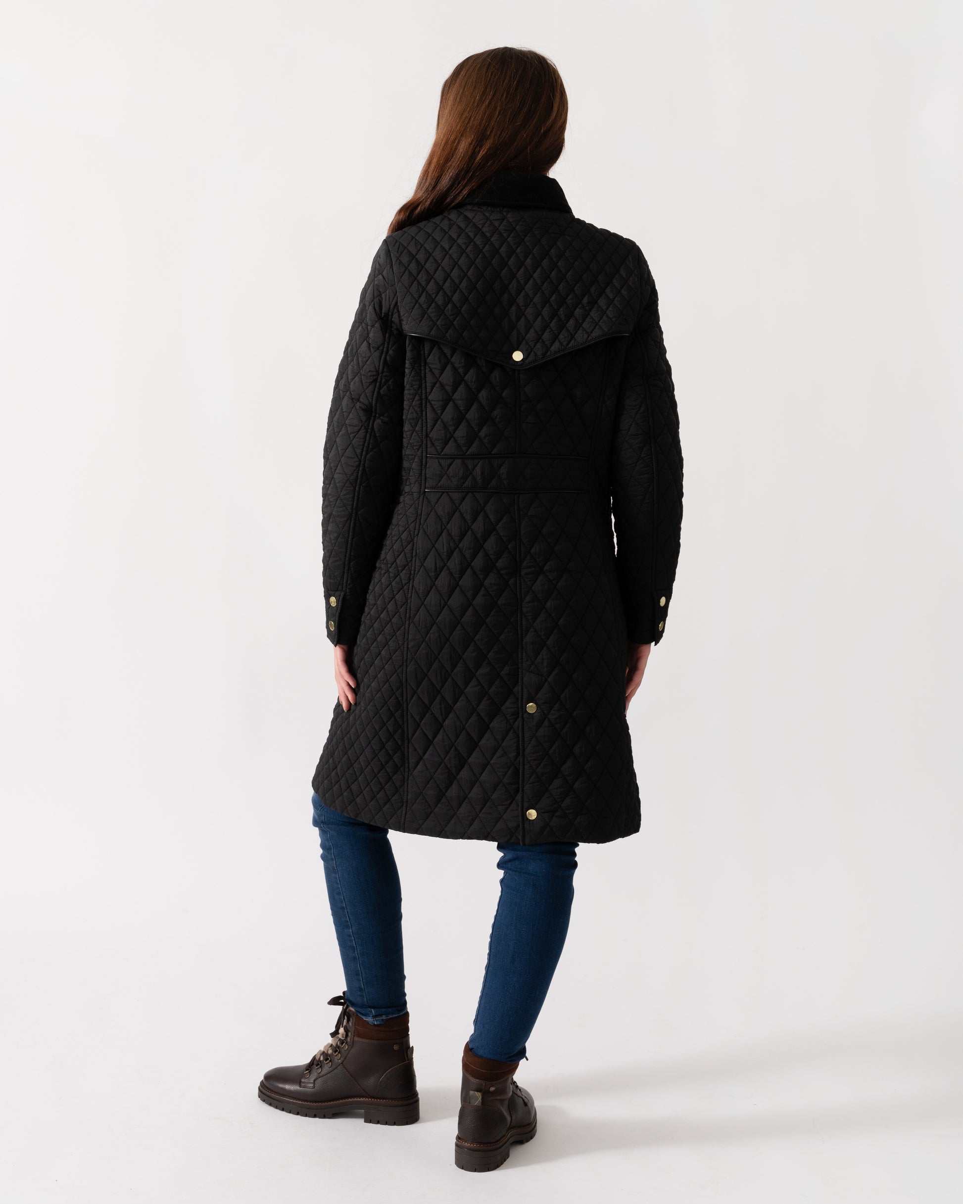 Rosewell Womens Long Diamond Quilt Jacket - Black