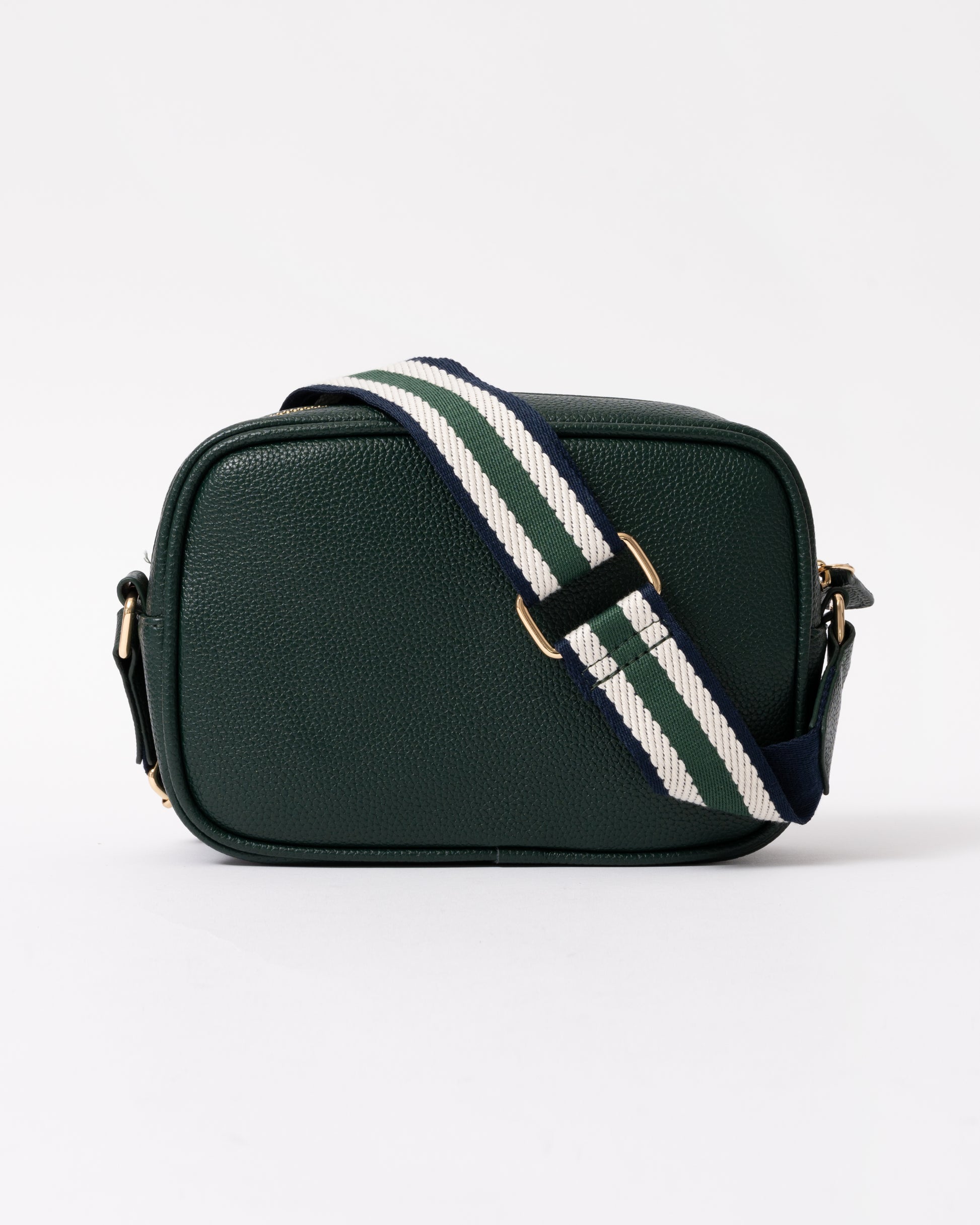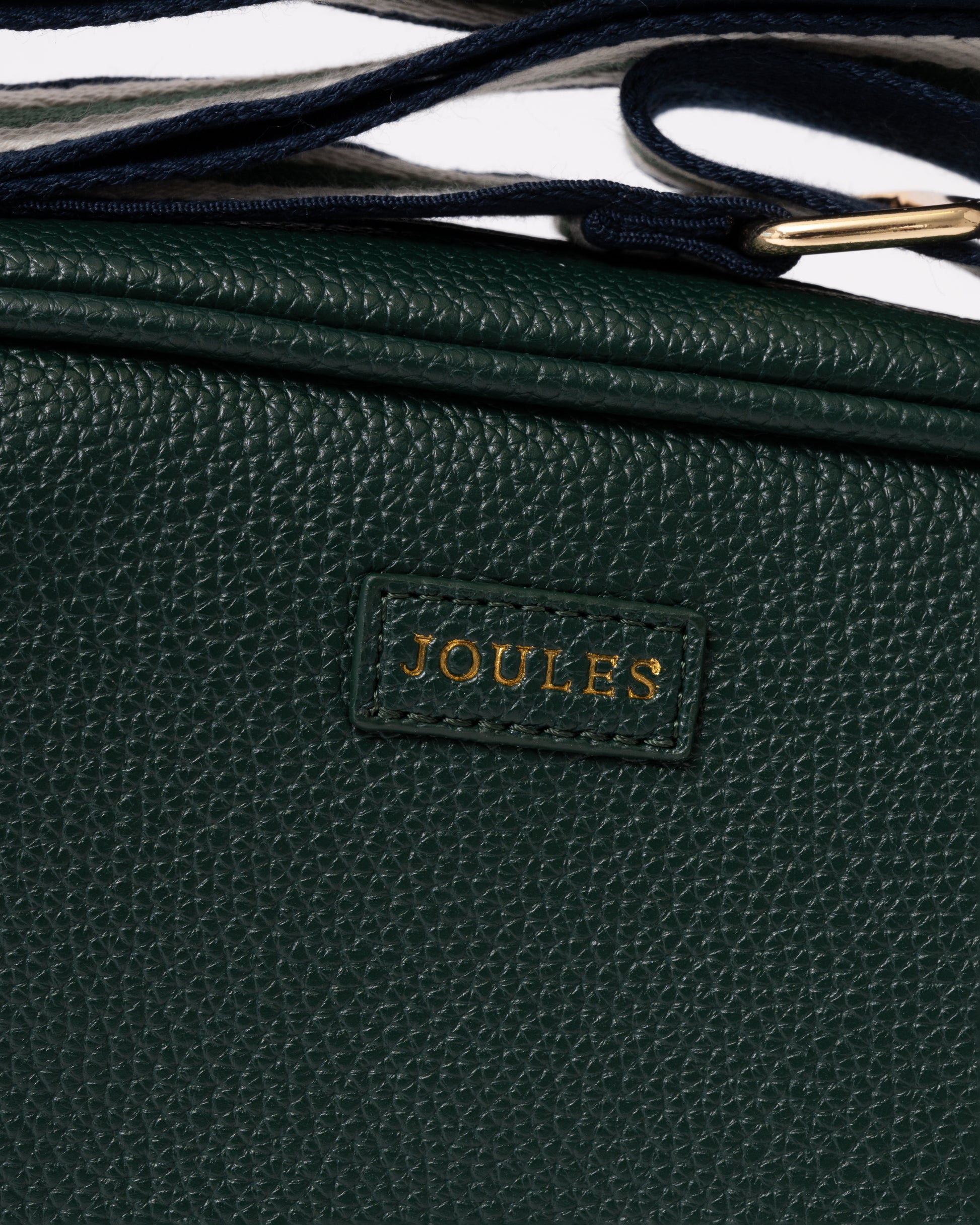 The contrasting webbing cross-body strap is adjustable so you can tailor the length and is fixed by two metal loops. Inside there's plenty of space for your essentials along with a slip-in pocket to separate smaller items. It's finished with Joules branding to the front. Faux leather outer.