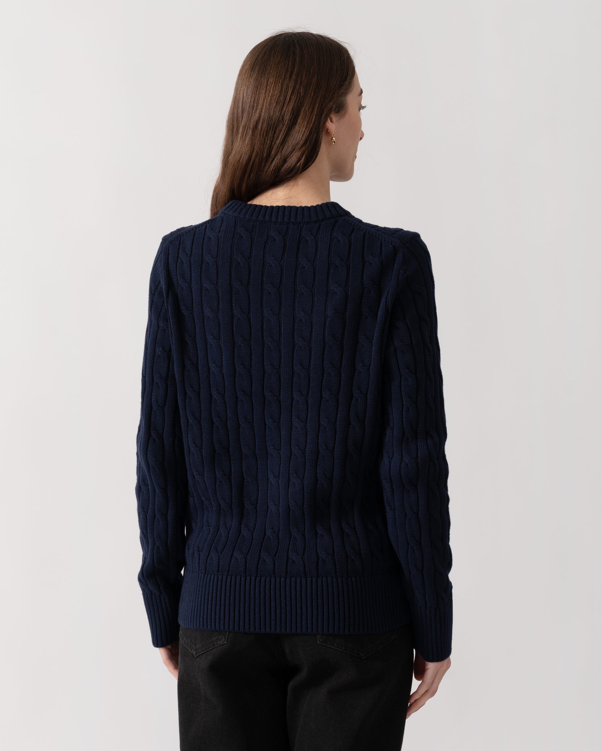 Womens Classic Cable Knit Jumper - Navy