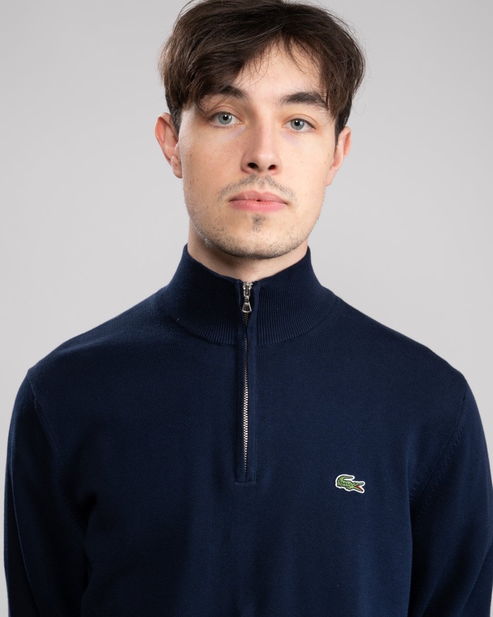 Lacoste Half Zip Logo Mens Sweatshirt in Navy Blue 166