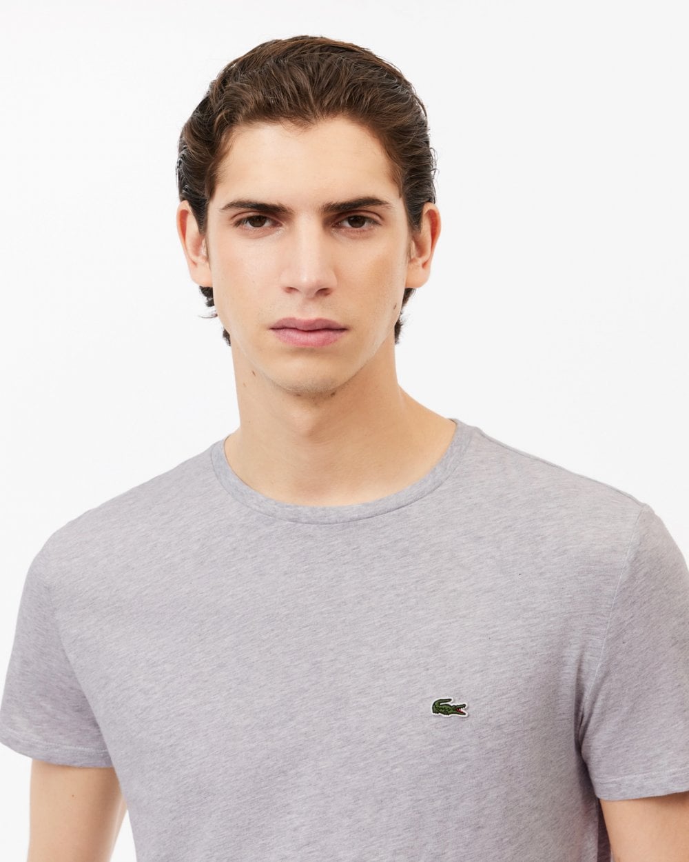 Lacoste Mens Crew Neck Pima Cotton Jersey T-Shirt in Silver Chine CCA