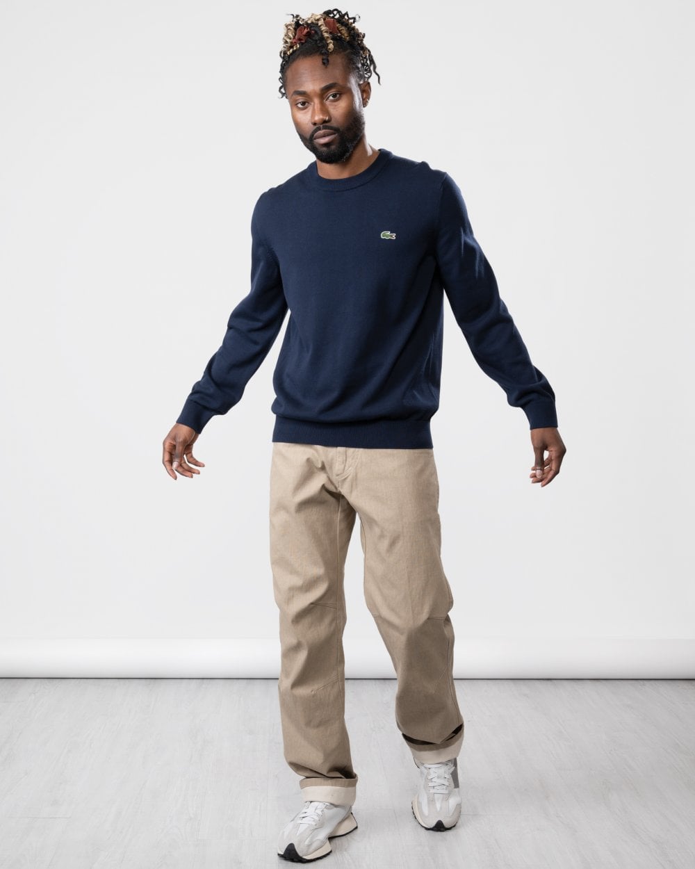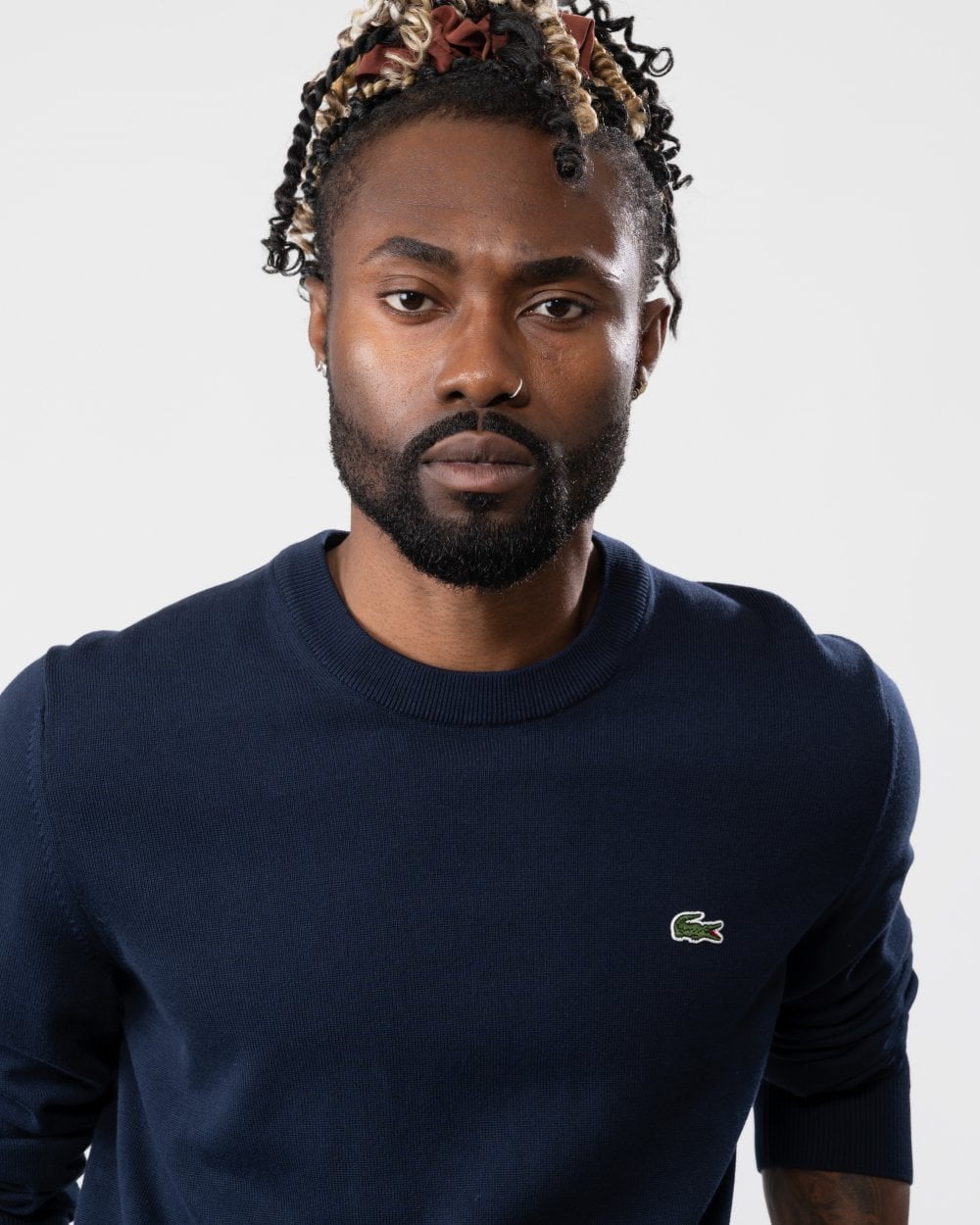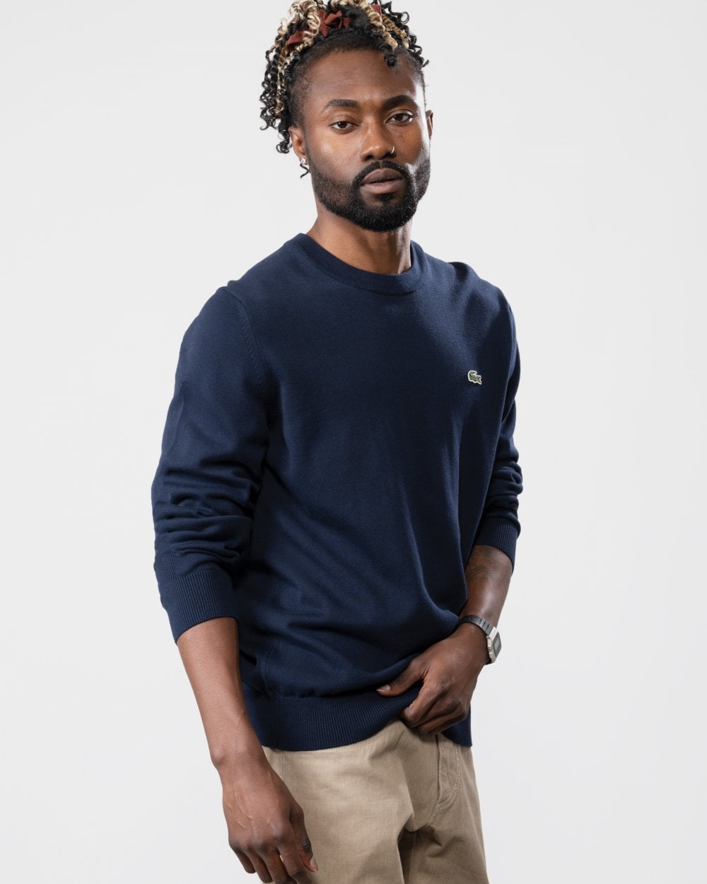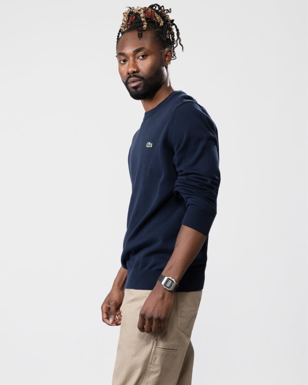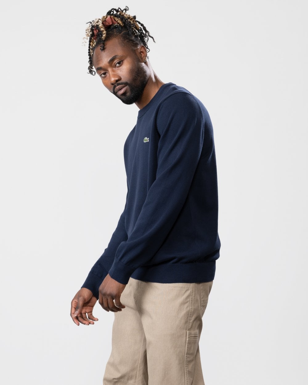 Lacoste Mens Organic Cotton Crew Neck Sweater in Navy Blue 166