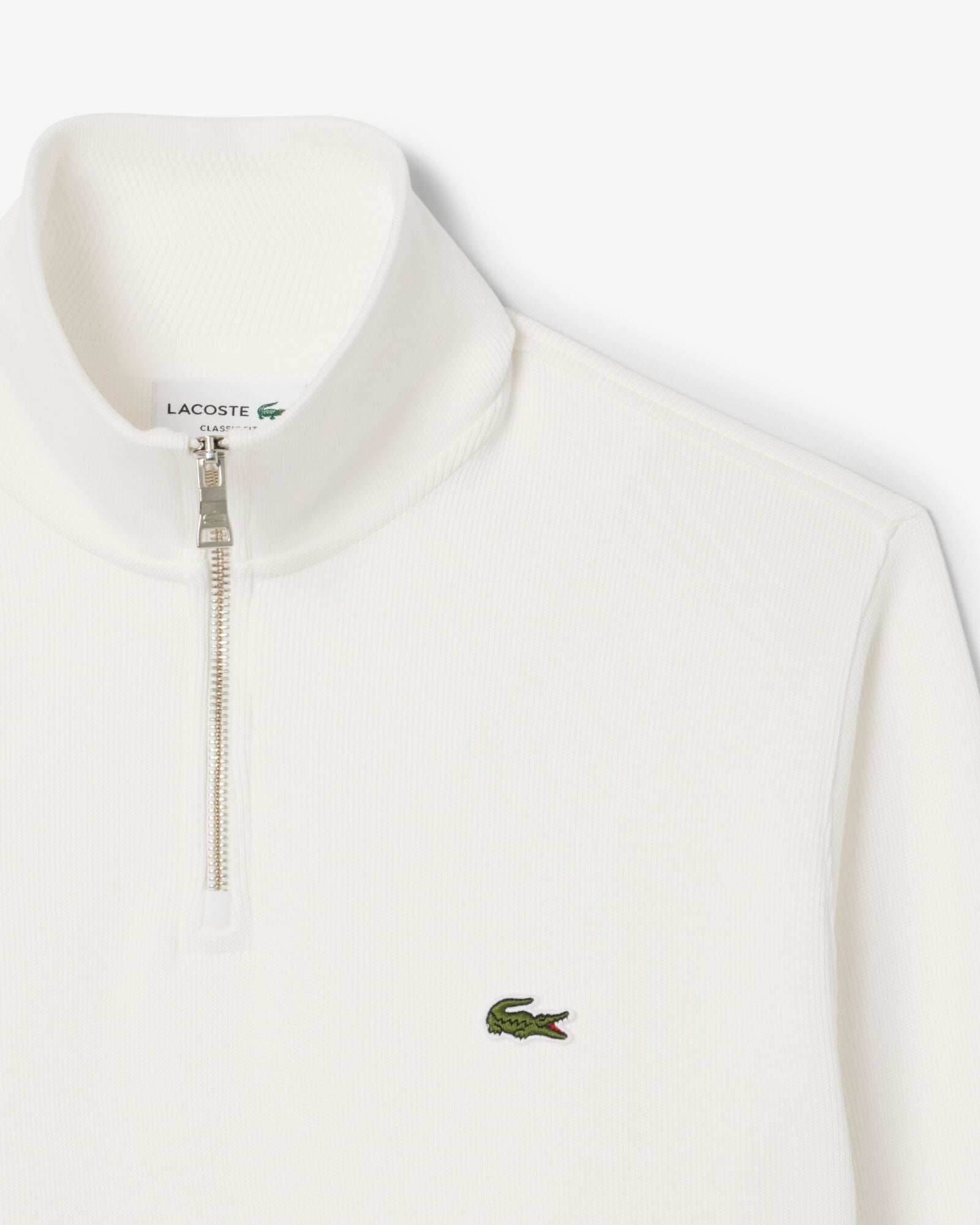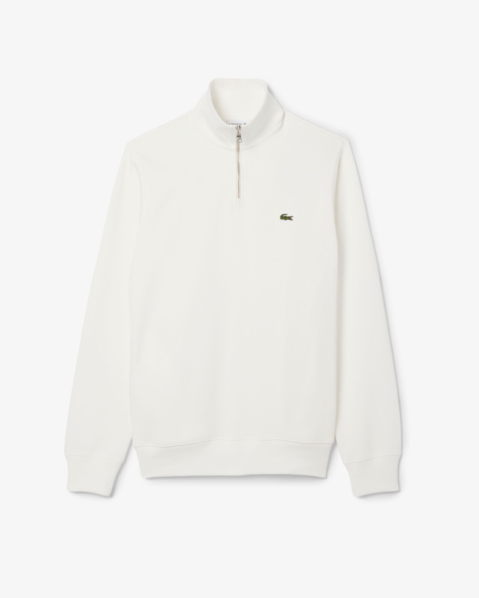 Lacoste Mens Zippered Stand-Up Collar Cotton Sweatshirt in Flour 70V