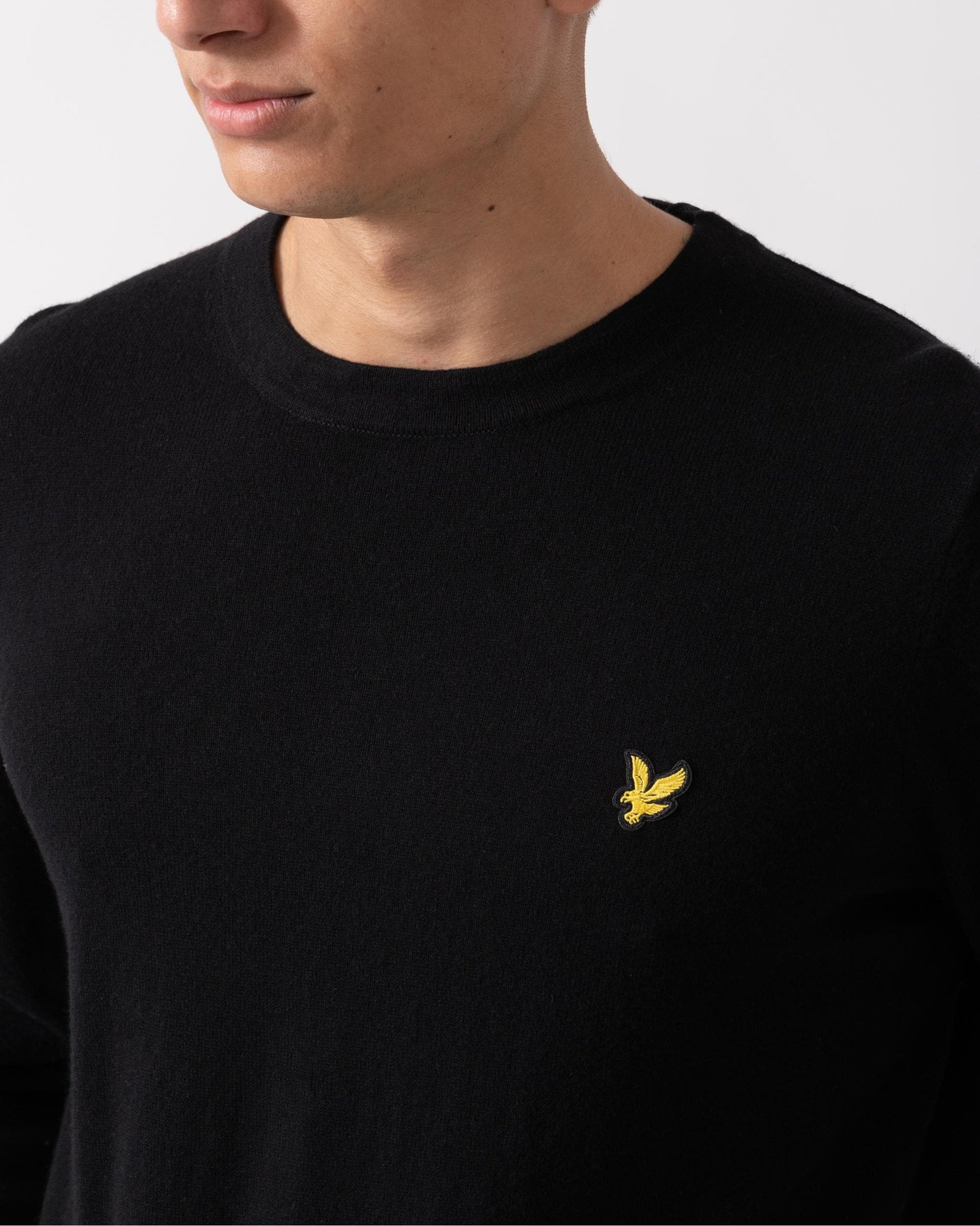 Lyle & Scott Cotton Merino Mens Crew Neck Jumper in Z865 Jet Black