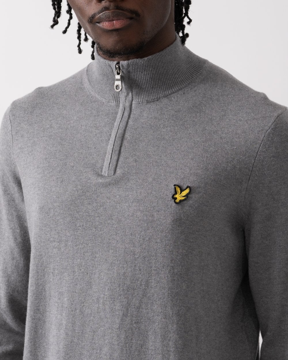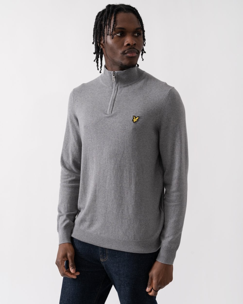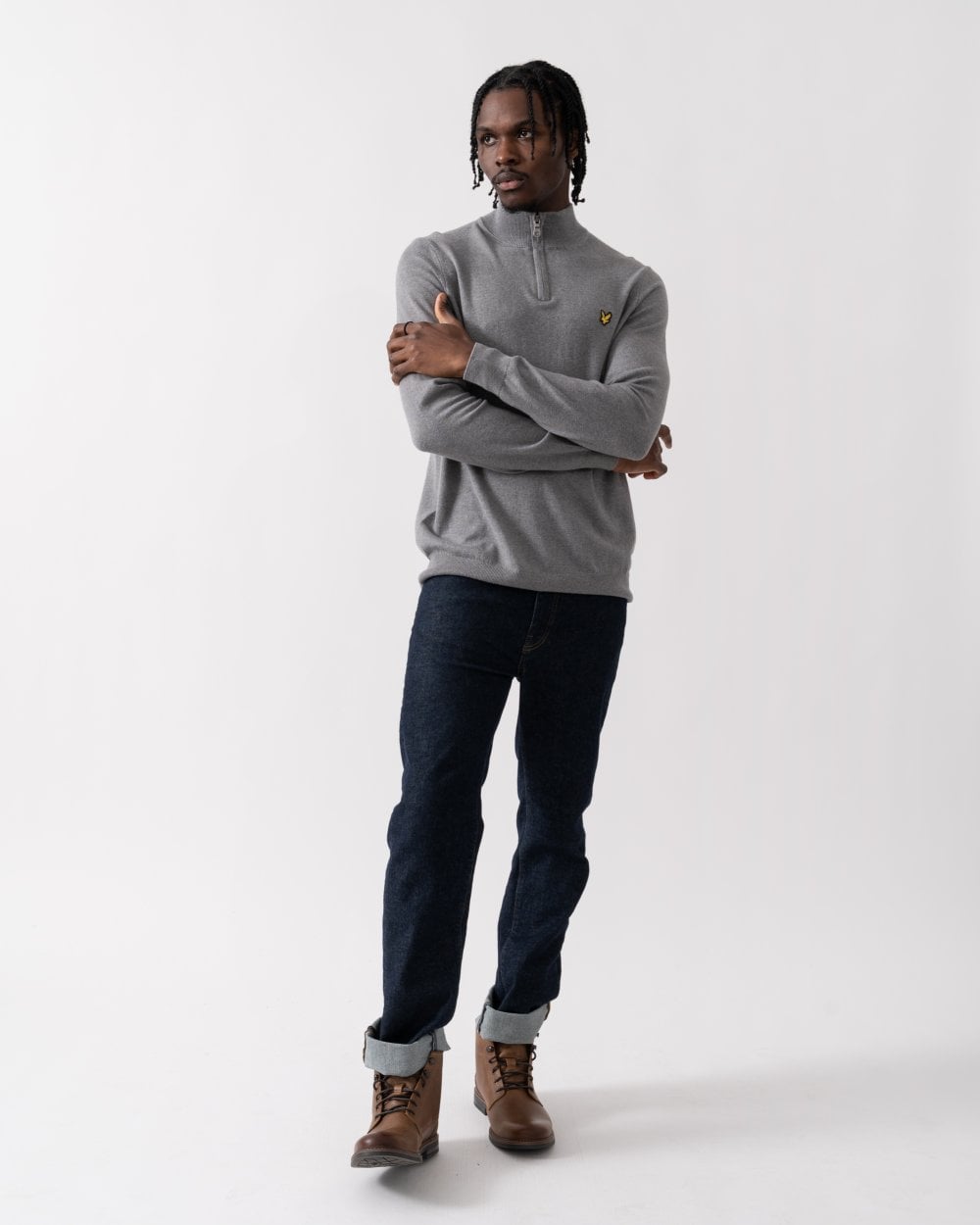 Lyle & Scott Cotton Merino Mens Quarter Zip Jumper in T28 Mid Grey Marl